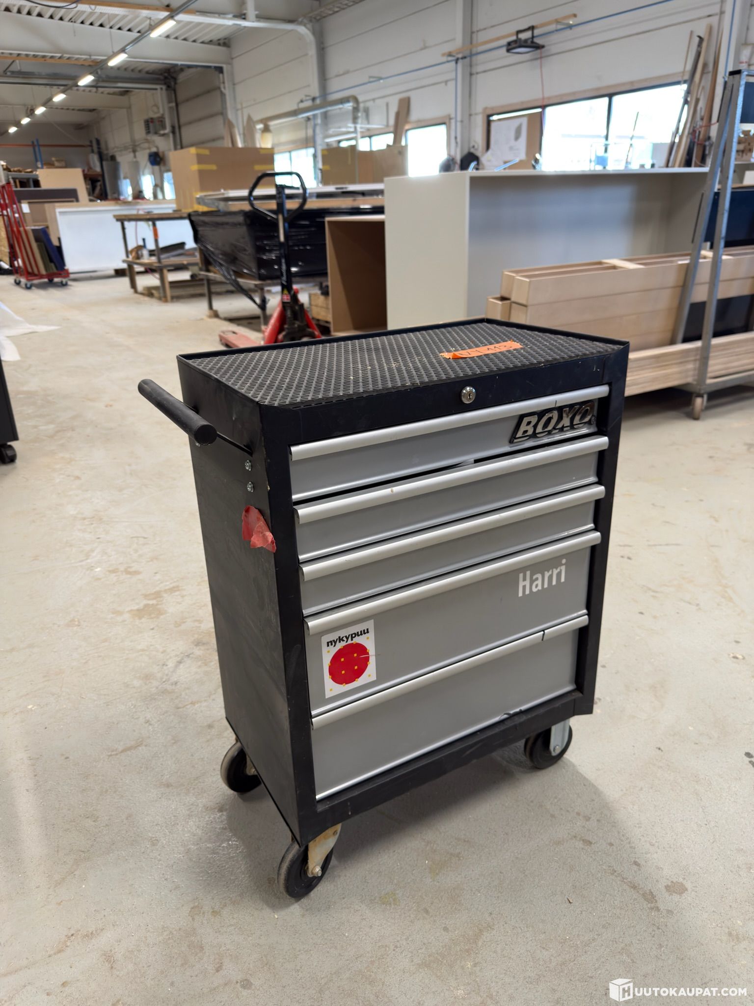 Boxo työkaluvaunu sisältöinen.