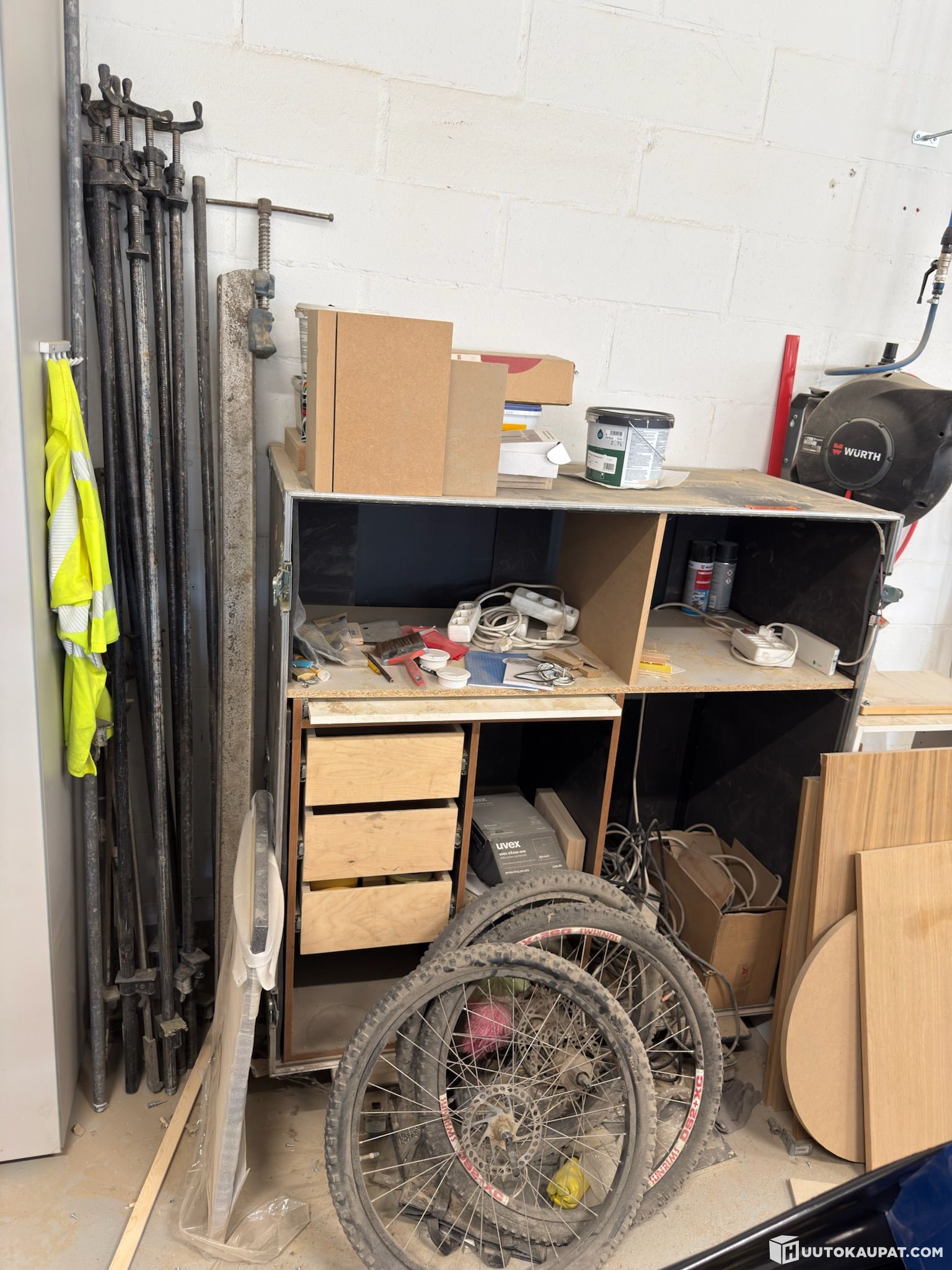 Pitkät tankopuristimet, jatkojohdot, Wurth paineilmaletkukela, jatkojohtokela yms.