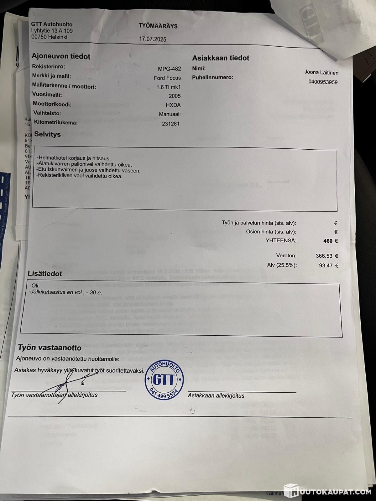 Liikeeseen ajosta tullut koukullinen bensa Focus huutoon. Auto ollut päivittäisessä käytössä ja tullut vaihdossa uudemman tieltä. Autossa satunnaisia ruostepaikkoja joista ei vielä toistaiseksi mennyt ruuvimeisseli läpi. Autoon mukaan 3-sarjaa renkaita ja vanteita joista jokainen ajettavassa kunnossa.