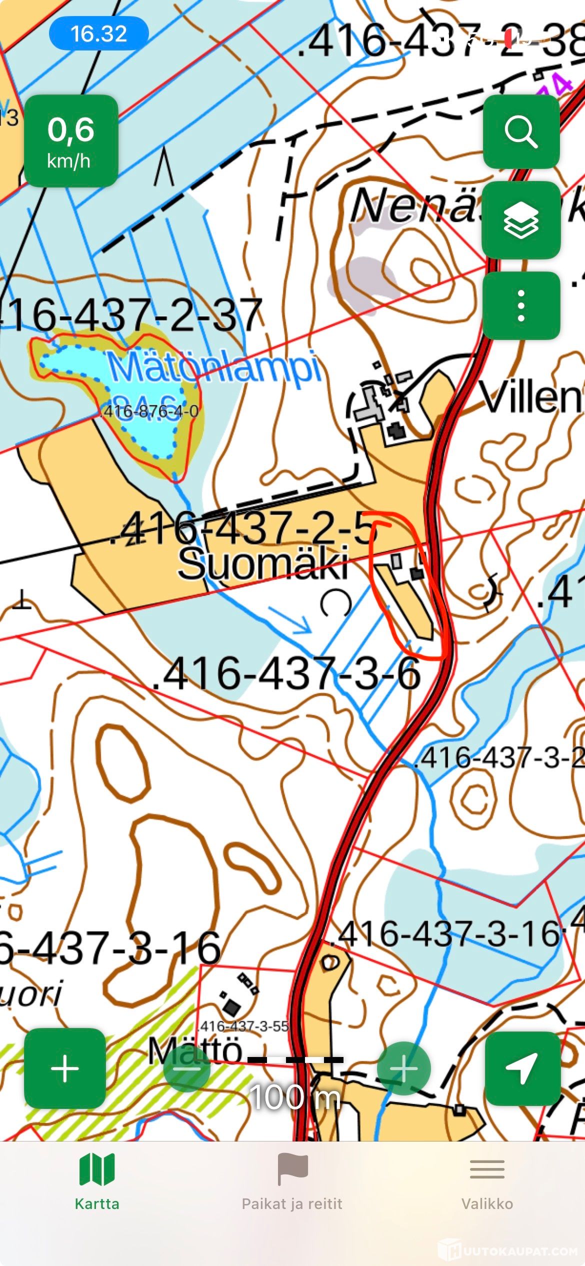 Kiinteistöstä 416-437-3-6 Suomäki lohkaistava n. 0,5 ha kiinteistö, jossa pieni peltoala, puutarha (omenapuita ja marjapensaita), hyväkuntoinen vanha aita ja navetta sekä tyhjillään ollut 1953 valmistunut talo. Määräalalla olevat rakennukkset ovat tulleet haltuun metsäkaupan yhteydessä (2025), jolloin ne on myyty purkukuntoisina. Talossa ei ole vesijohtoa eikä viemäriä. Sähköt on. Silmämääräisesti arvioiden talo vaatii ulkomaalauksen ja sisällä seinän pinkopahvin vaihdon tai muun pintakorjauksen lähinnä olohuoneessa. Lattiat ja laipio ok. Talossa, navetassa ja aitassa jonkin verran irtaimistoa, huonekaluja, pientavaraa, työkaluja ja esimerkiksi polttopuita. Navettarakennuksessa on myös sauna. Navetan tai talon hormistoja ei ole tarkastettu tai nuohottu. Kiinteistövero vuodelle 2026 on 86,70€. Määräalan lohkomiskustannukset noin 1500€ maksetaan ostajan kanssa puoliksi.