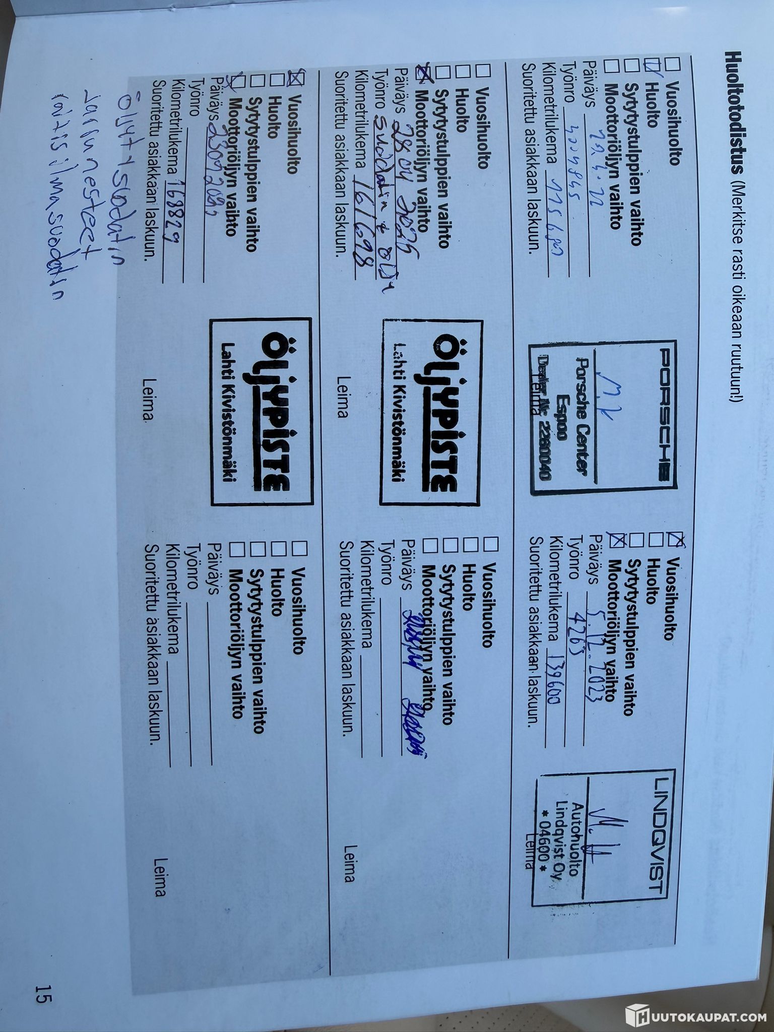 Huollot: Huoltokirjasta kuvat ja viimeisimmästä jarruremontin kuitista kuvat!