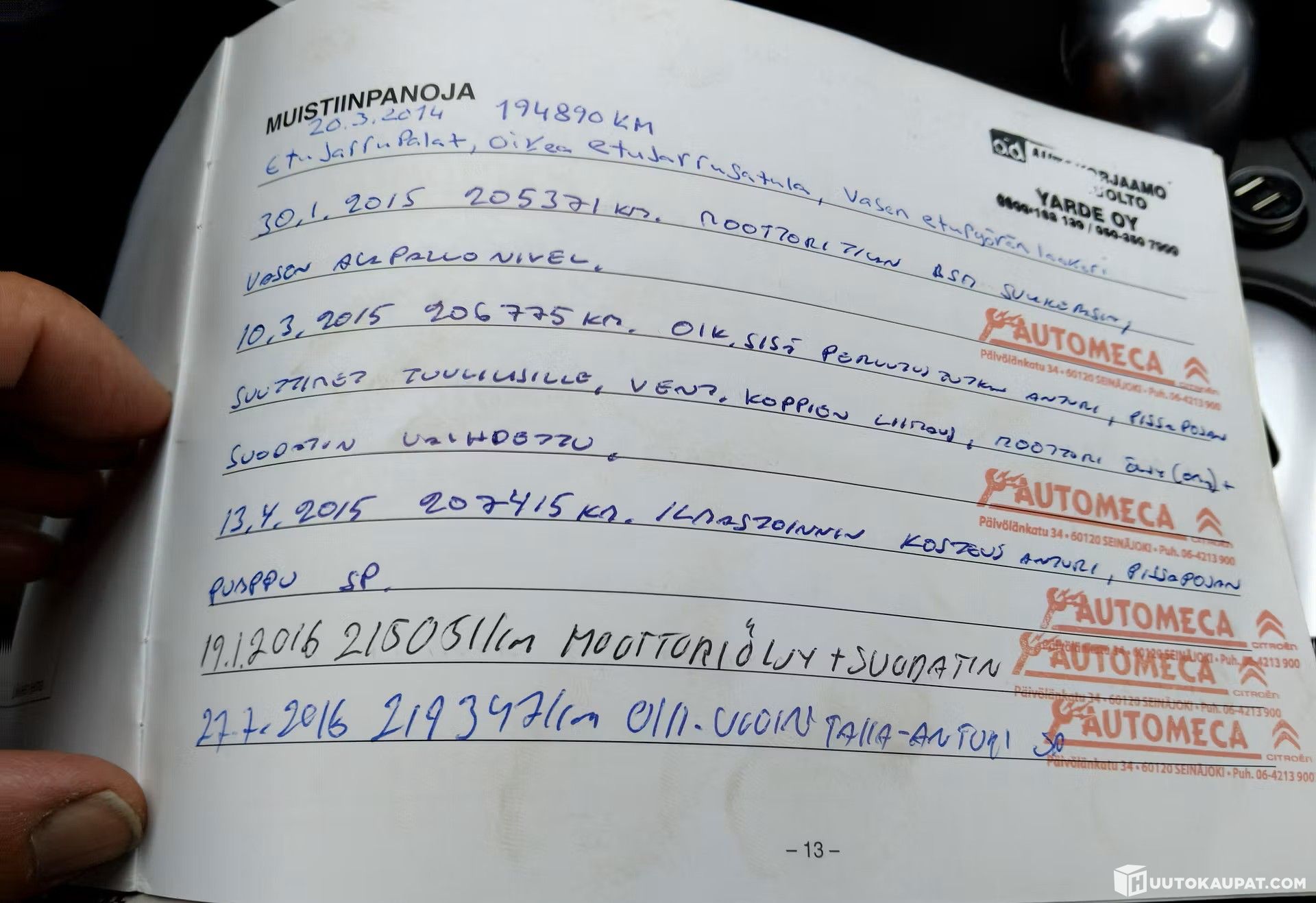 Minun (yli 3v.) aikana laitettu uusi tuulilasi ja etujarrupalat 05/24 ja viime katsastukseen vasen etupyörän laakeri sekä alapallonivelet molemmille puolille myös eteen.