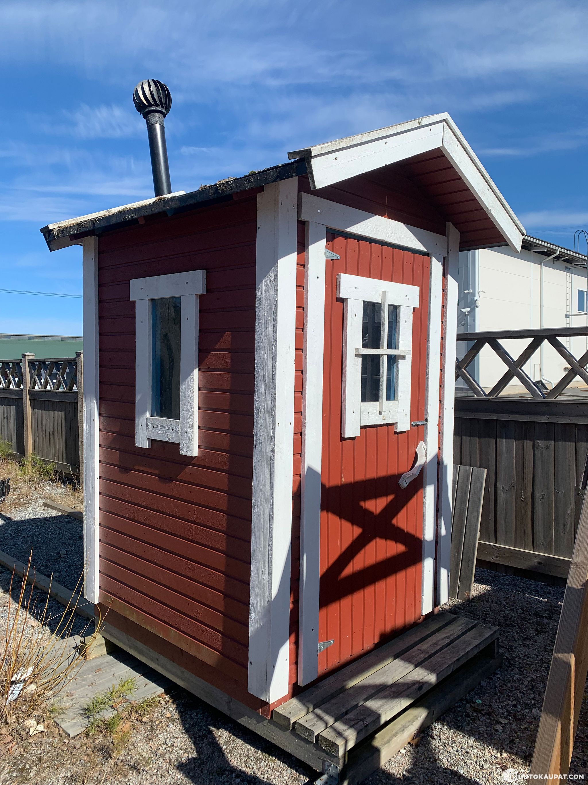 Muutaman vuoden pihakaluste näyttelyssä Hinnerjoella ollut käymälä. Kauppaan sisältyy Käymälärakennus sekä käymälälaite. Tuote maalattu ulkoa punaiseksi ja sisältä siniseksi. Tuote nähtävänä näyttelyssämme 24/7.