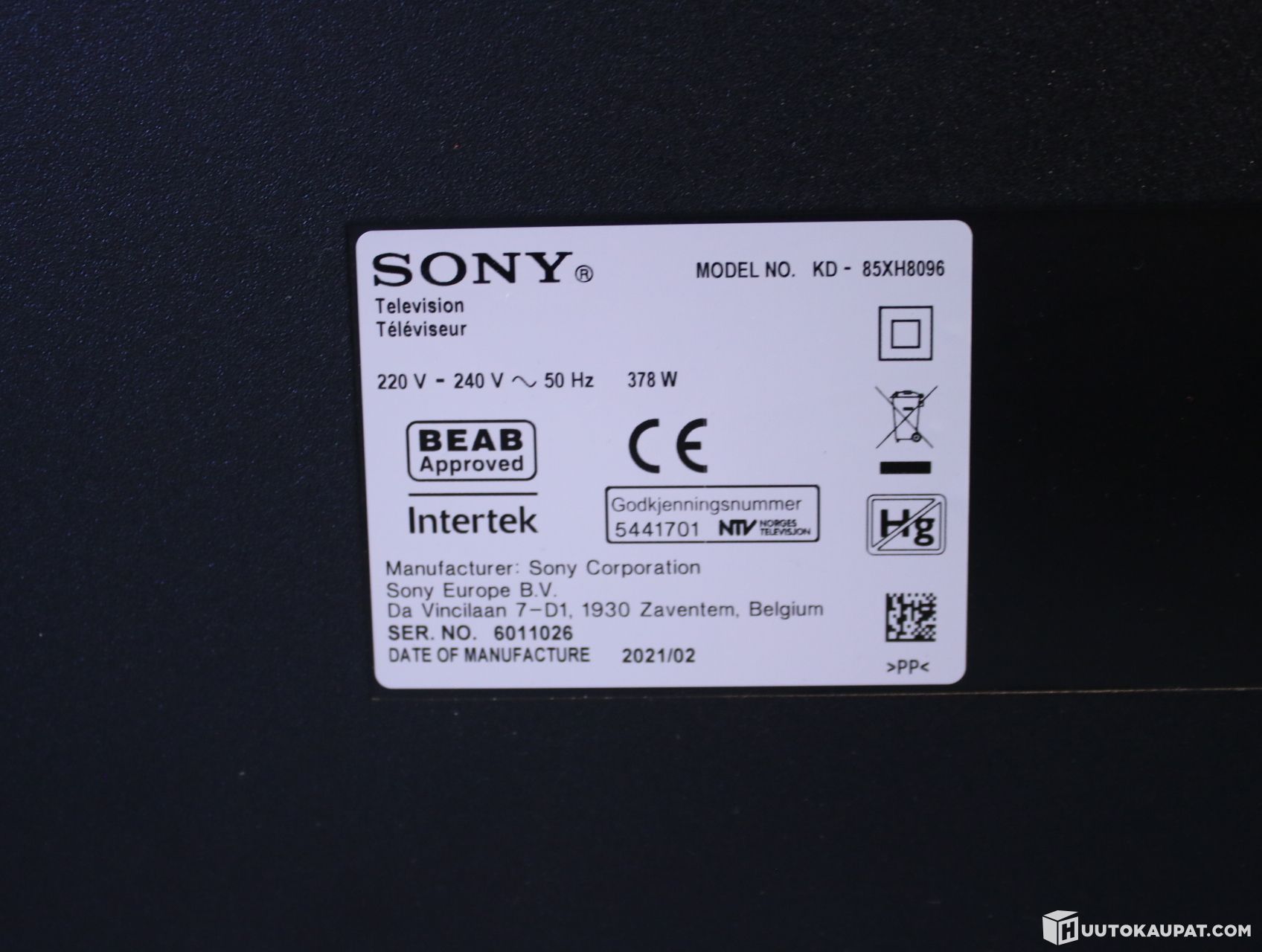 Myyntiin upea ja todella iso 85 tuuman Sony Bravia -televisio, malli KD-85XH8096.