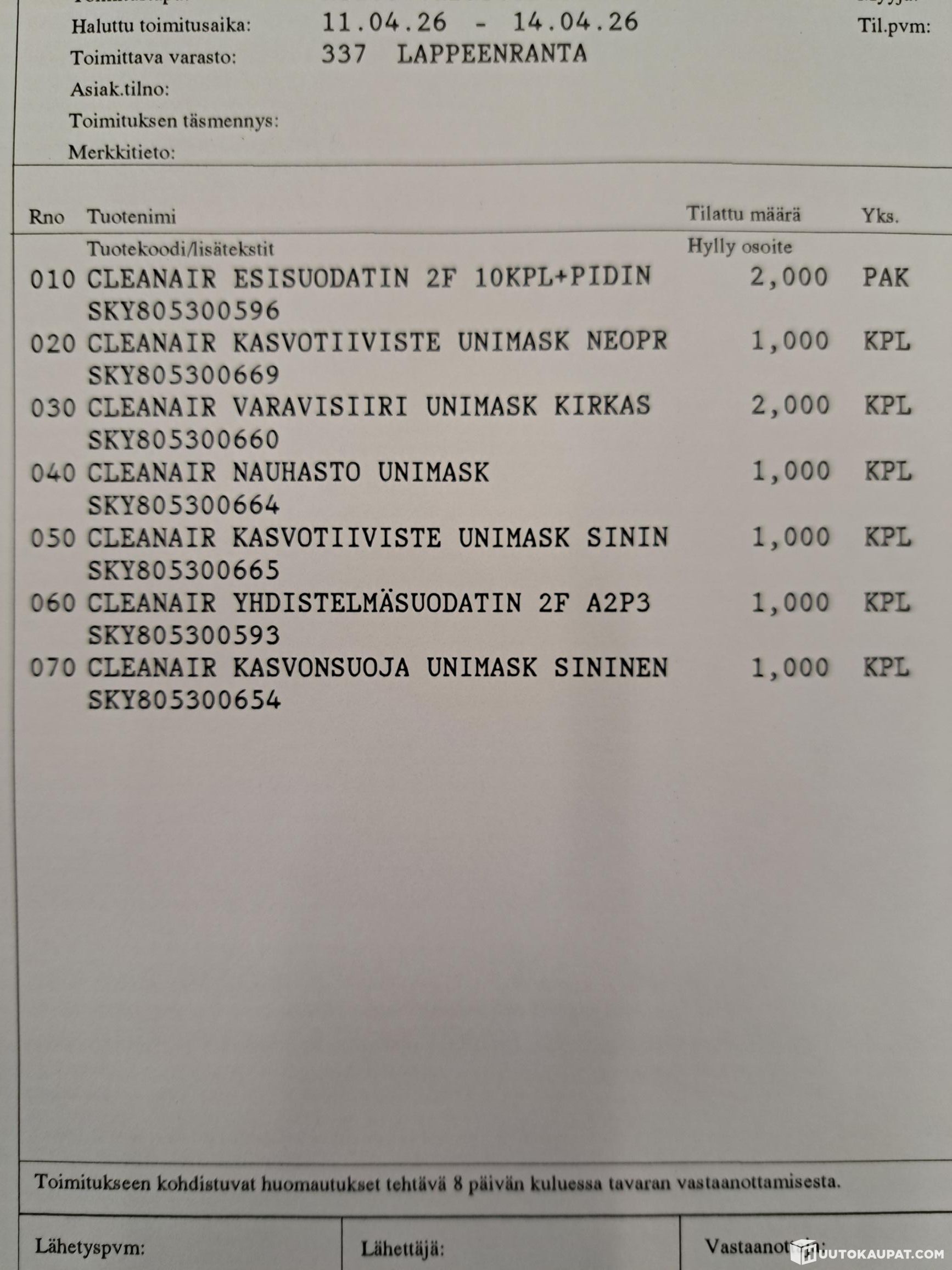 Myydään kuvanmukaiset Cleanair -kasvomaskin tarvikkeet. Päiväykset osassa tuotteissa menneet, osassa voimassa.