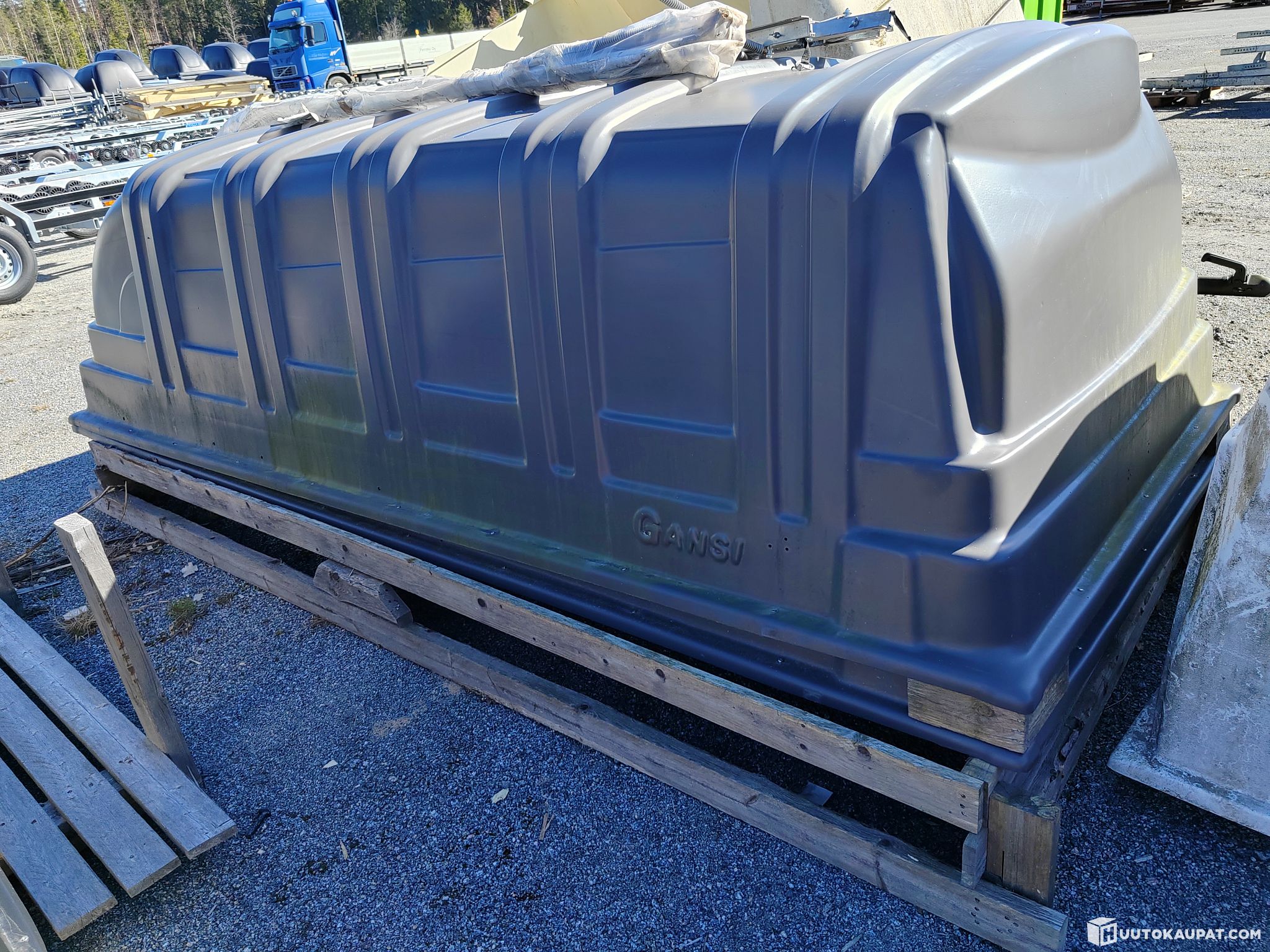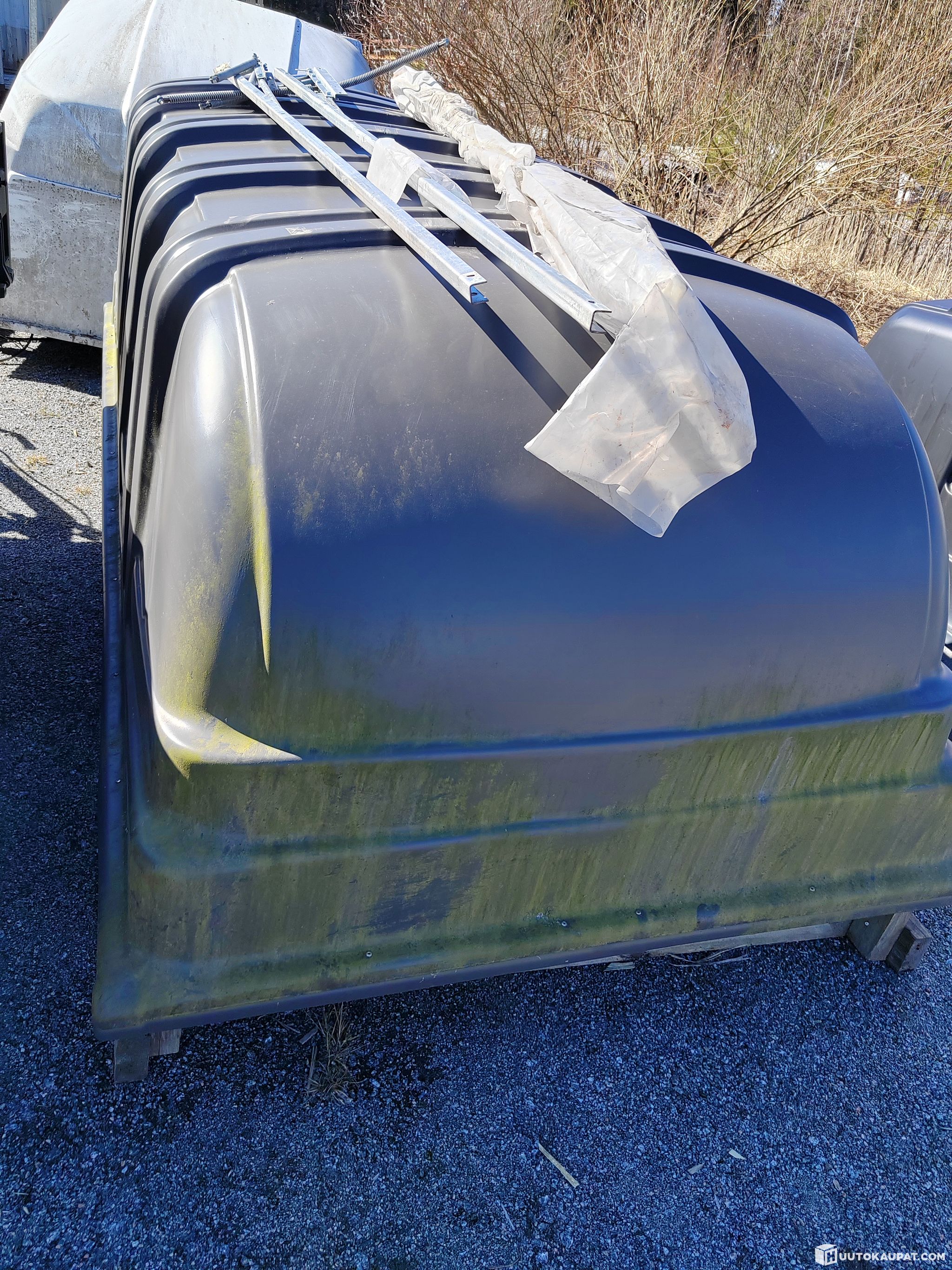 2 kpl musta Gansi muovikuomu peräkärryyn, jonka lavan sisämitat n 125x265 cm.
