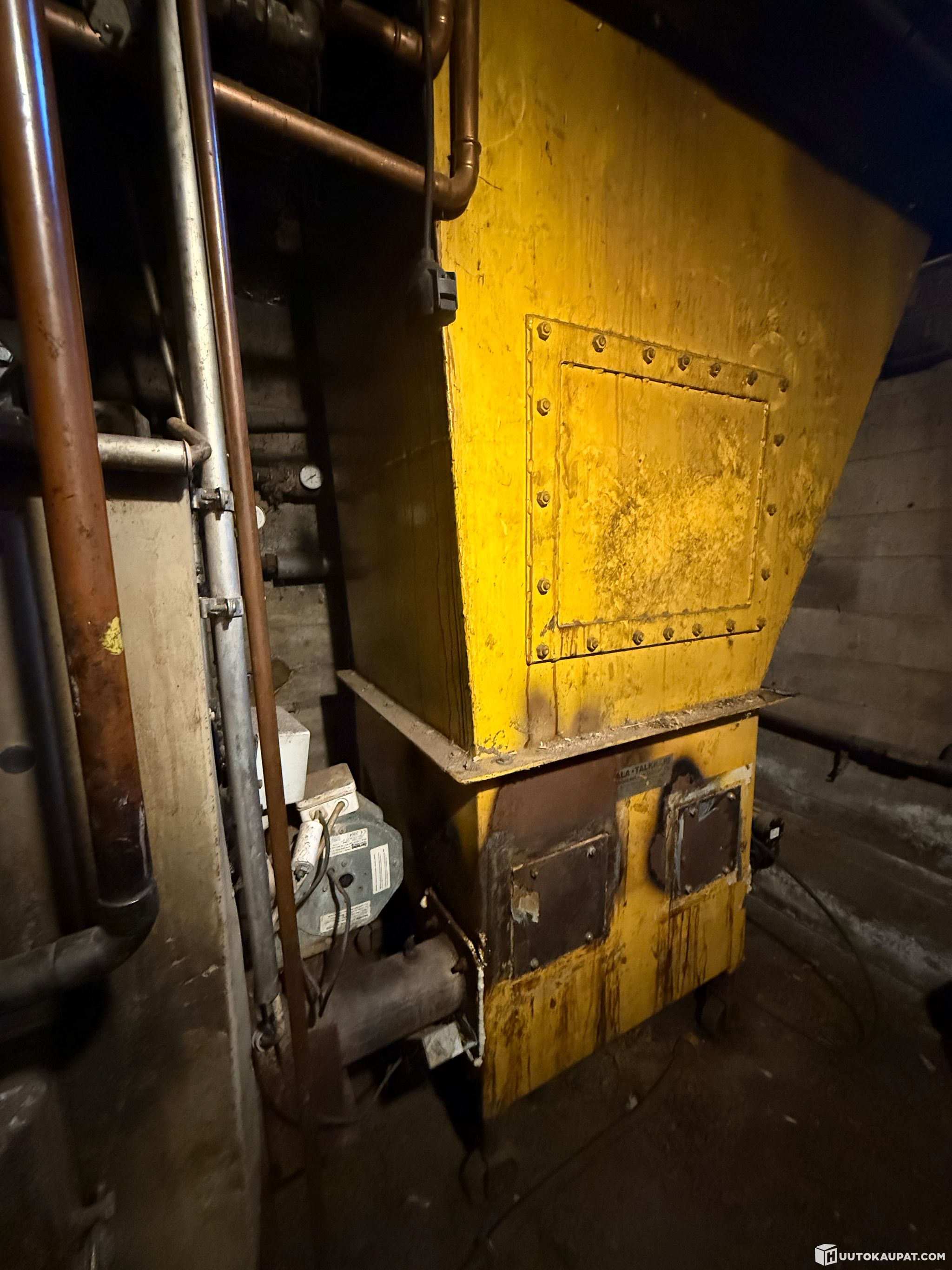 Kuvan veto-kattila ja sen laitteet eivät kuulu tähän huutoon, jossa myydään vain stokeri ja sen käyttölaitteet.