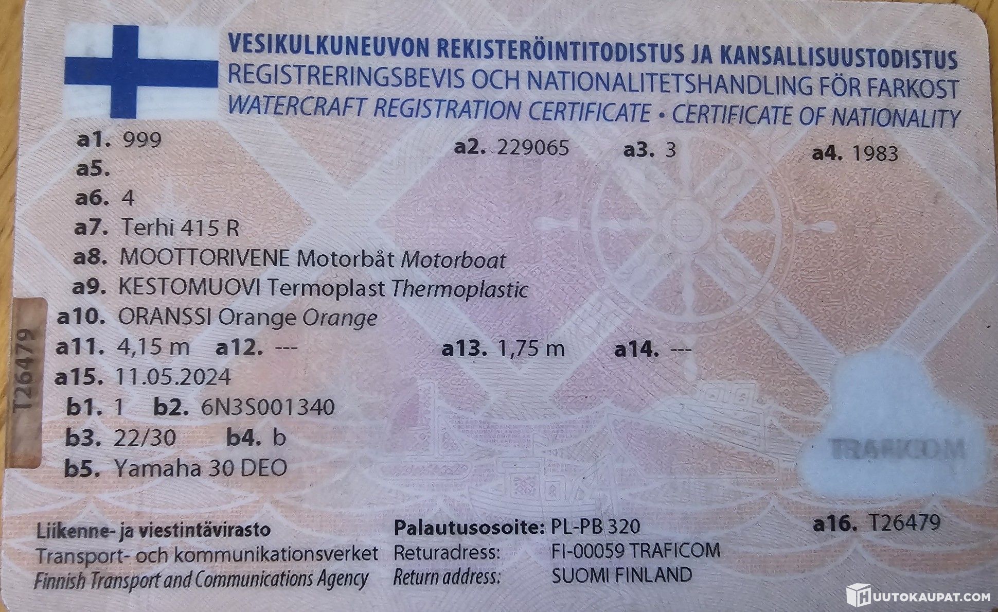 Holms marine & granit Ab Oy ilmoittaa, Huutokaupat.com myy