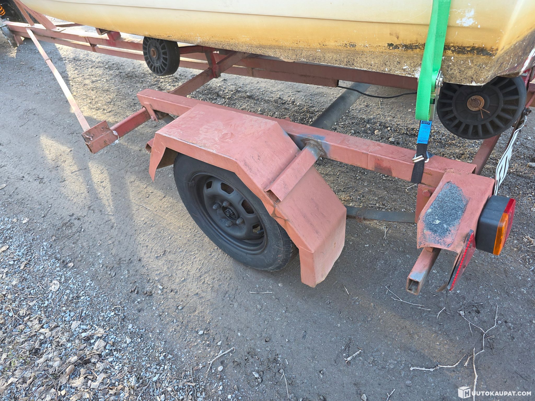 Omavalmiste venekärry, rekisterissä. Löytyy vaijeri vinssi sekä nokkapyörä. Rek.PFI-354