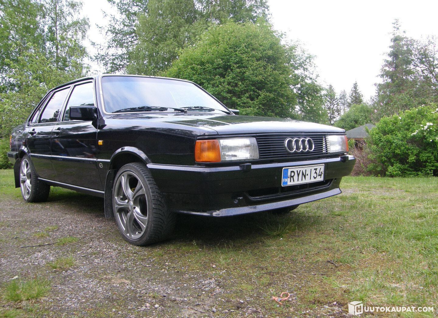 Komea, hyväkuntoinen nelikymppinen Audi 80. Edellinen omistaja oli aloittanut koneremontin 5 vuotta sitten, hankkinut uudet tiivisteet, laakerit,männänrenkaat,yms. Jäänyt ajanpuutteen vuoksi kesken. Korissa ei ollut minulla muuta tekemistä kuin asensin isot kuraläpät, kuten sen ajan autoissa oli.