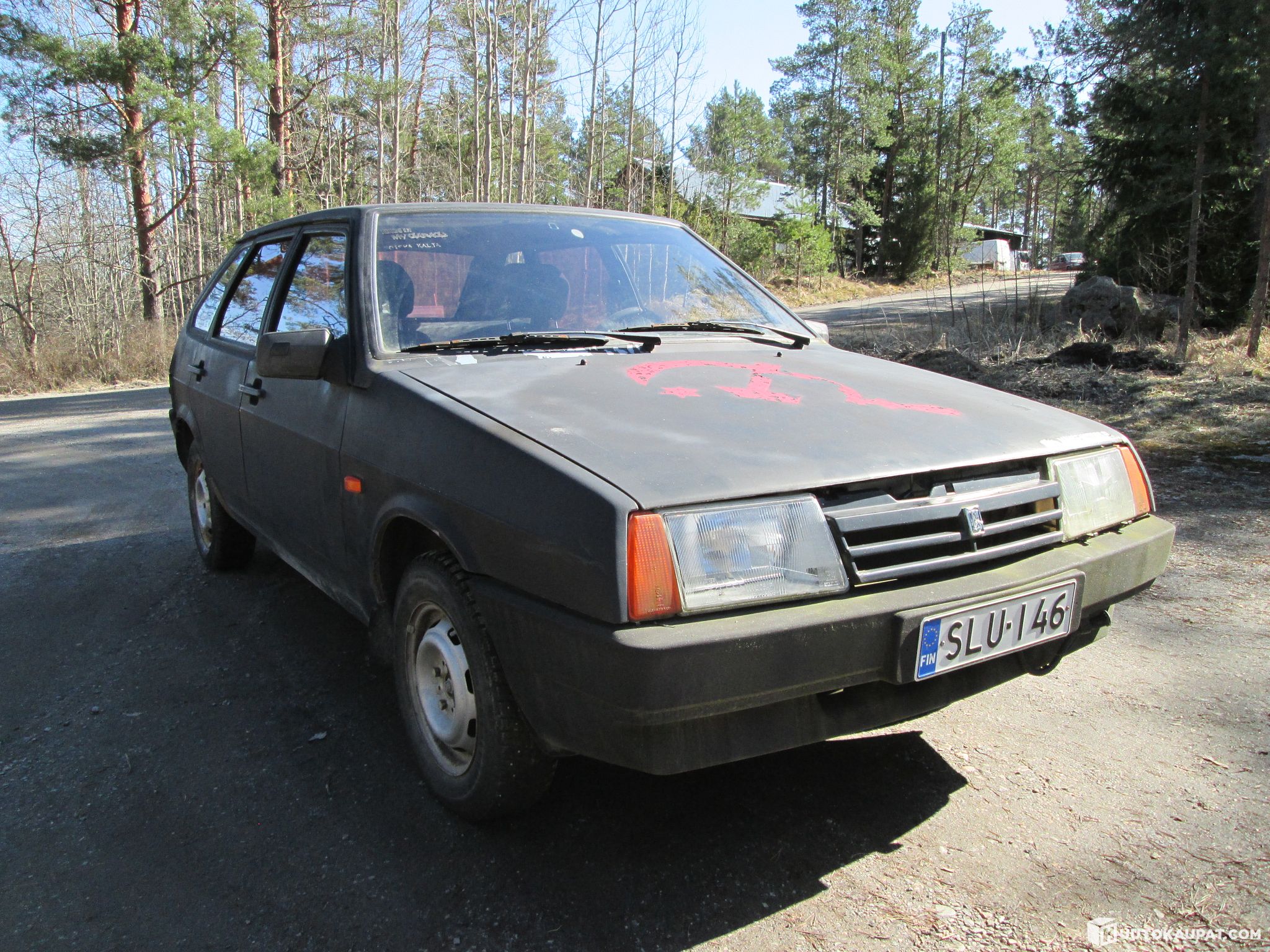 Mattamusta erikoismaalaus, joku teini joskus kaljapäissään maalannut (niitä ei saisi päästää lähellekään mitään autoa).