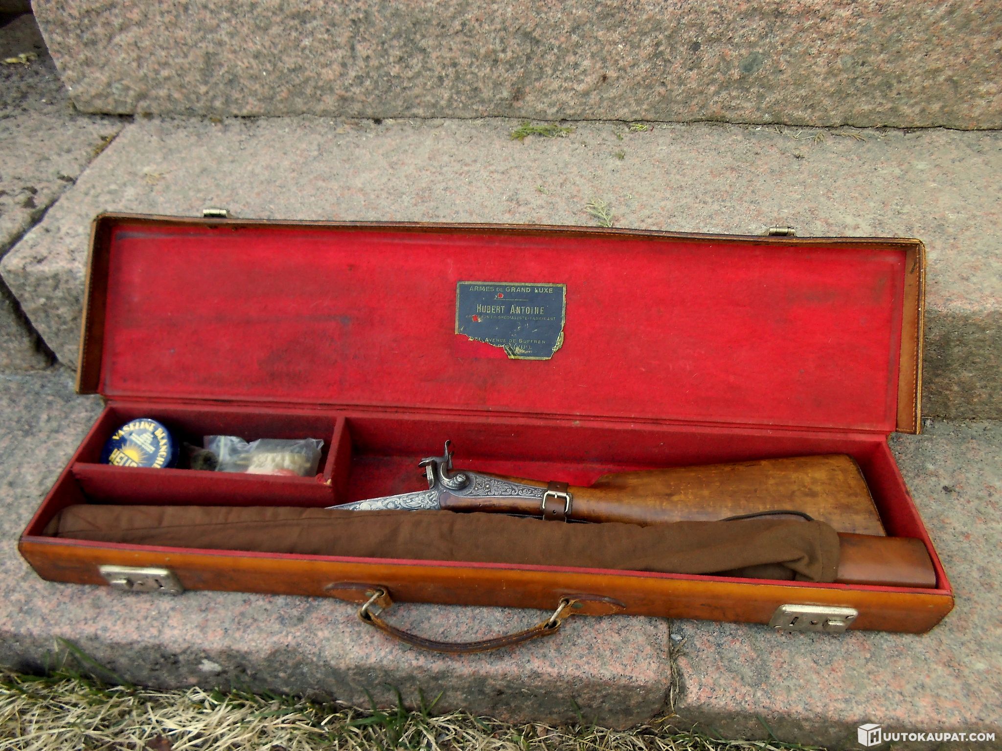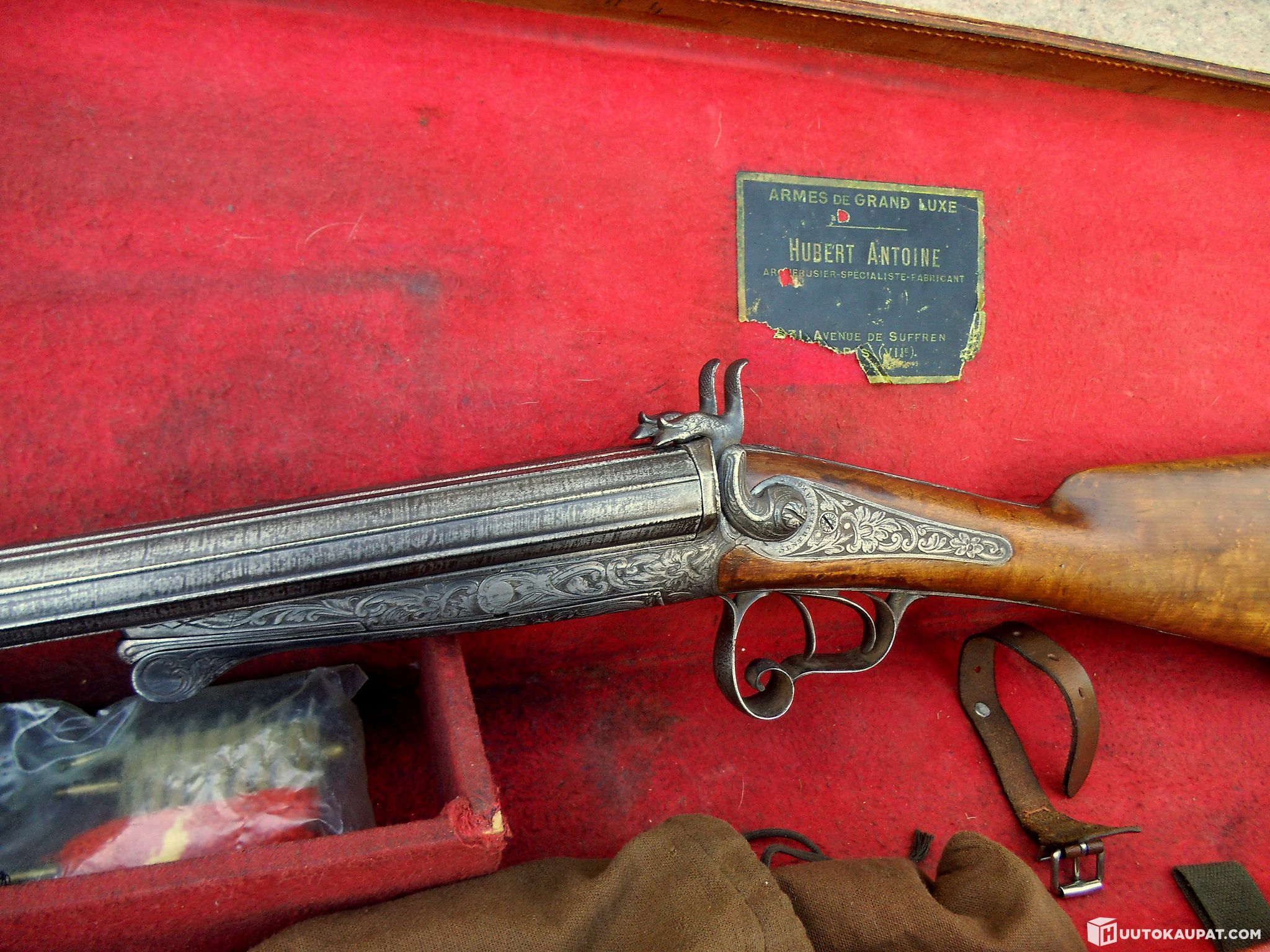 Jäätävän Upea 2-piippuinen piikkipatruunahaulikko laatikossa, noin 1875v.