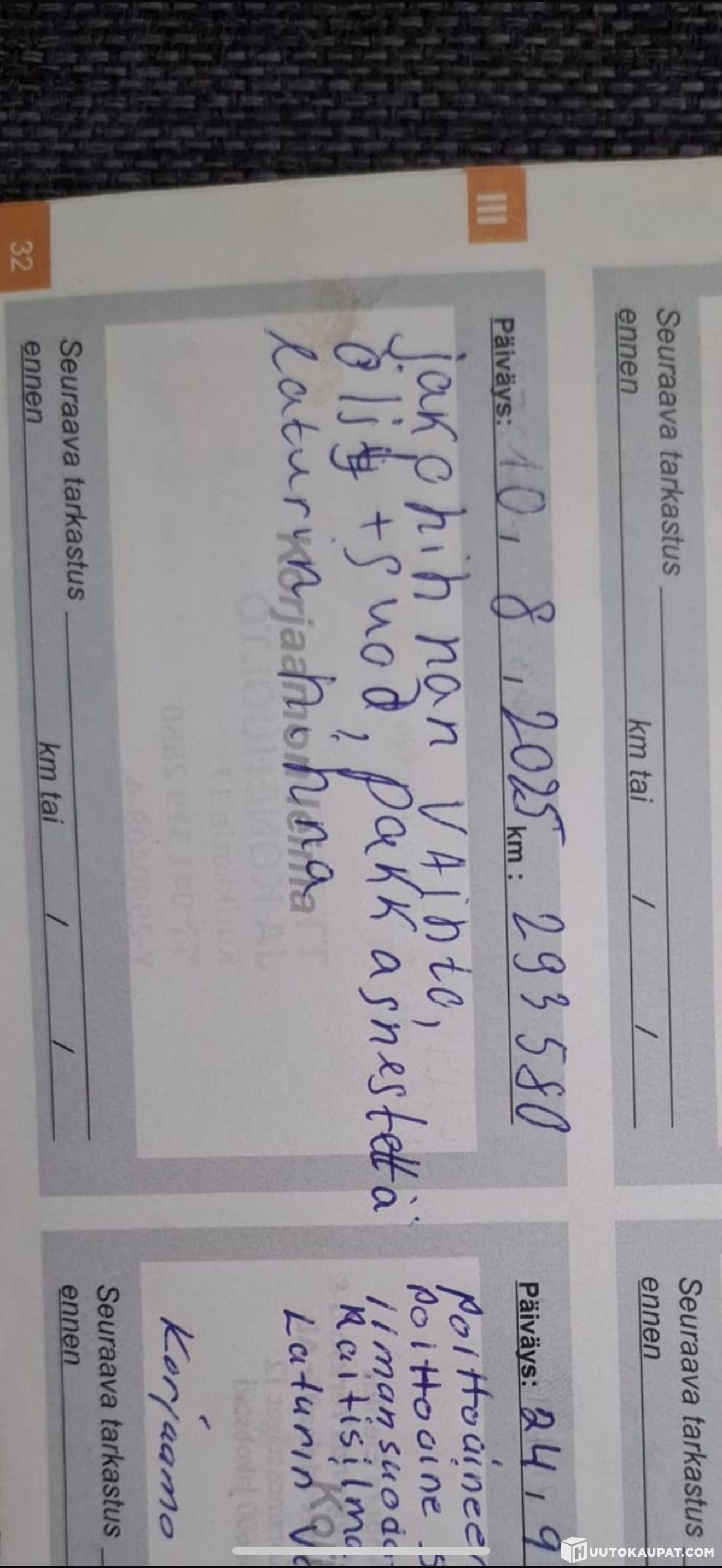 Käytetty katsastuksessa katsatustodistus/viat näkyy kuvissa