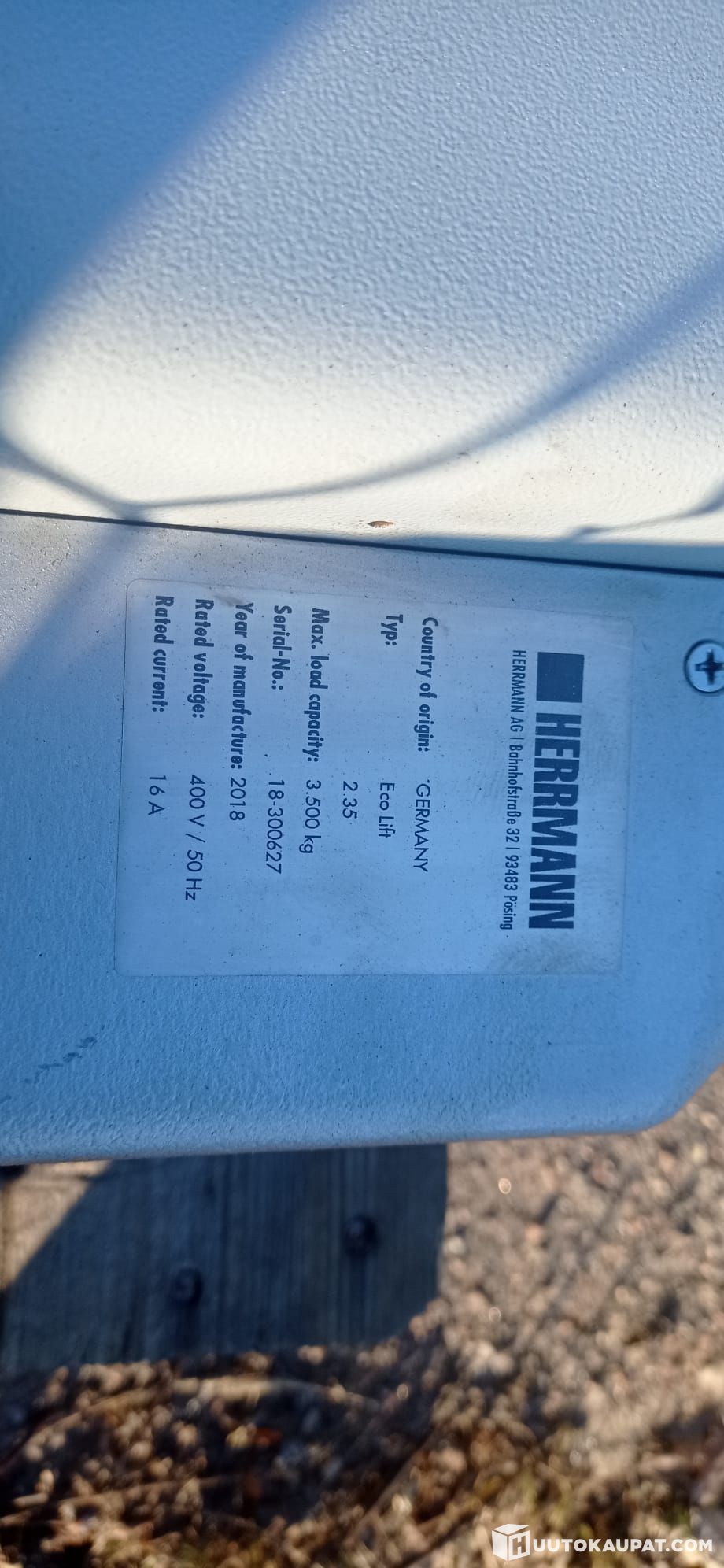 Herrmann autonostin, kaksipilarinen käpälä nostin. 3500 Kg VM 2018,