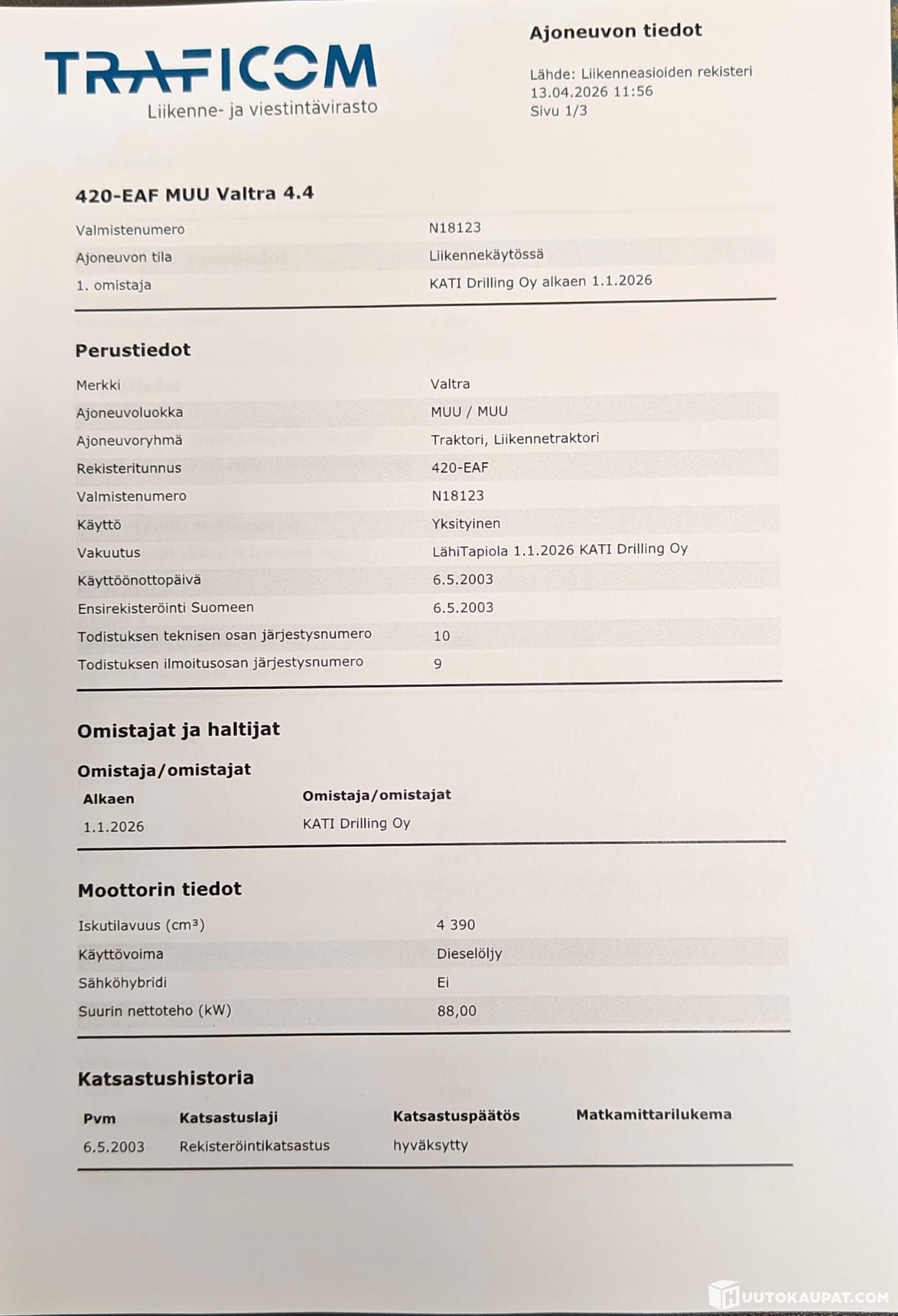 KATI Drilling Oy ilmoittaa, Huutokaupat.com myy