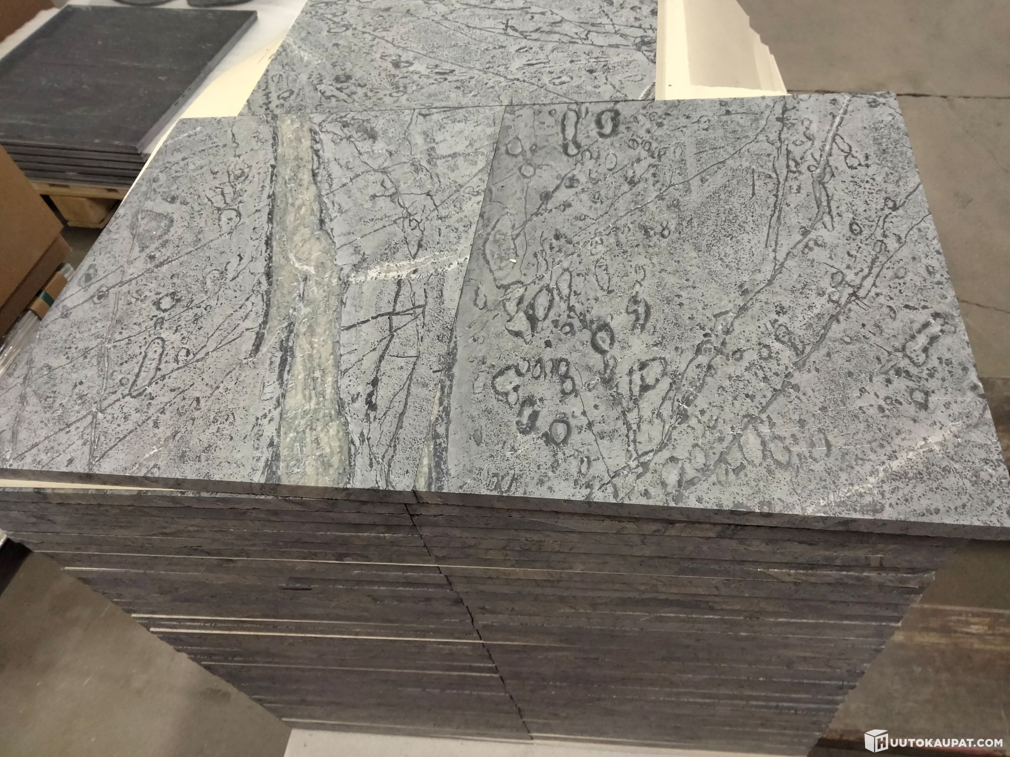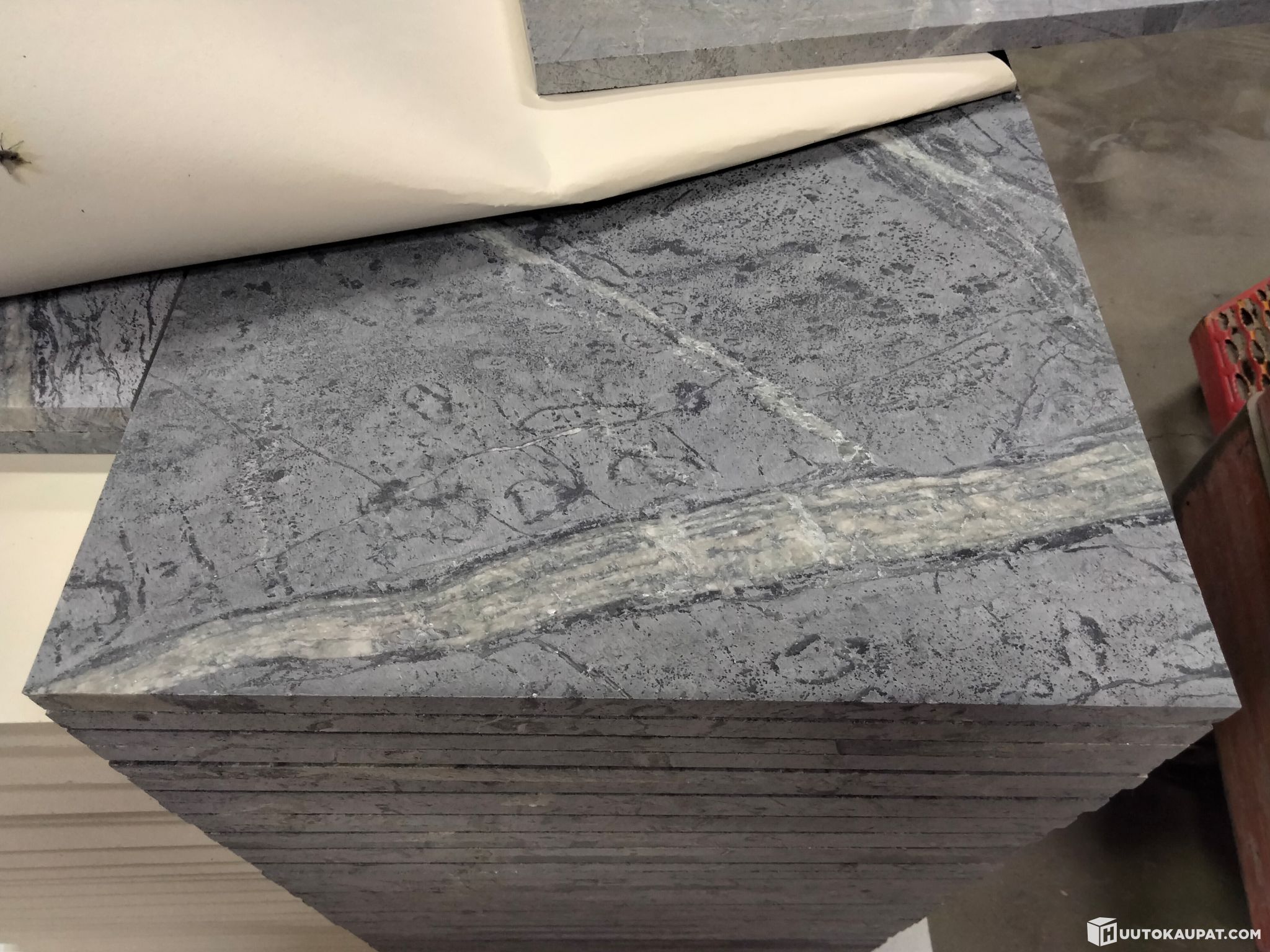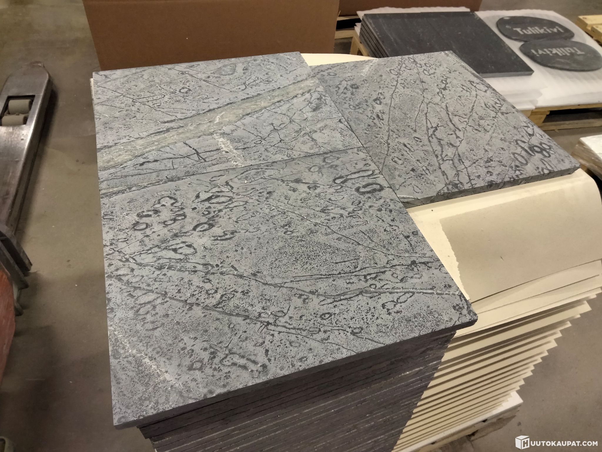 Pieni erä Juuassa louhittua vuolukivi blue-laattaa.