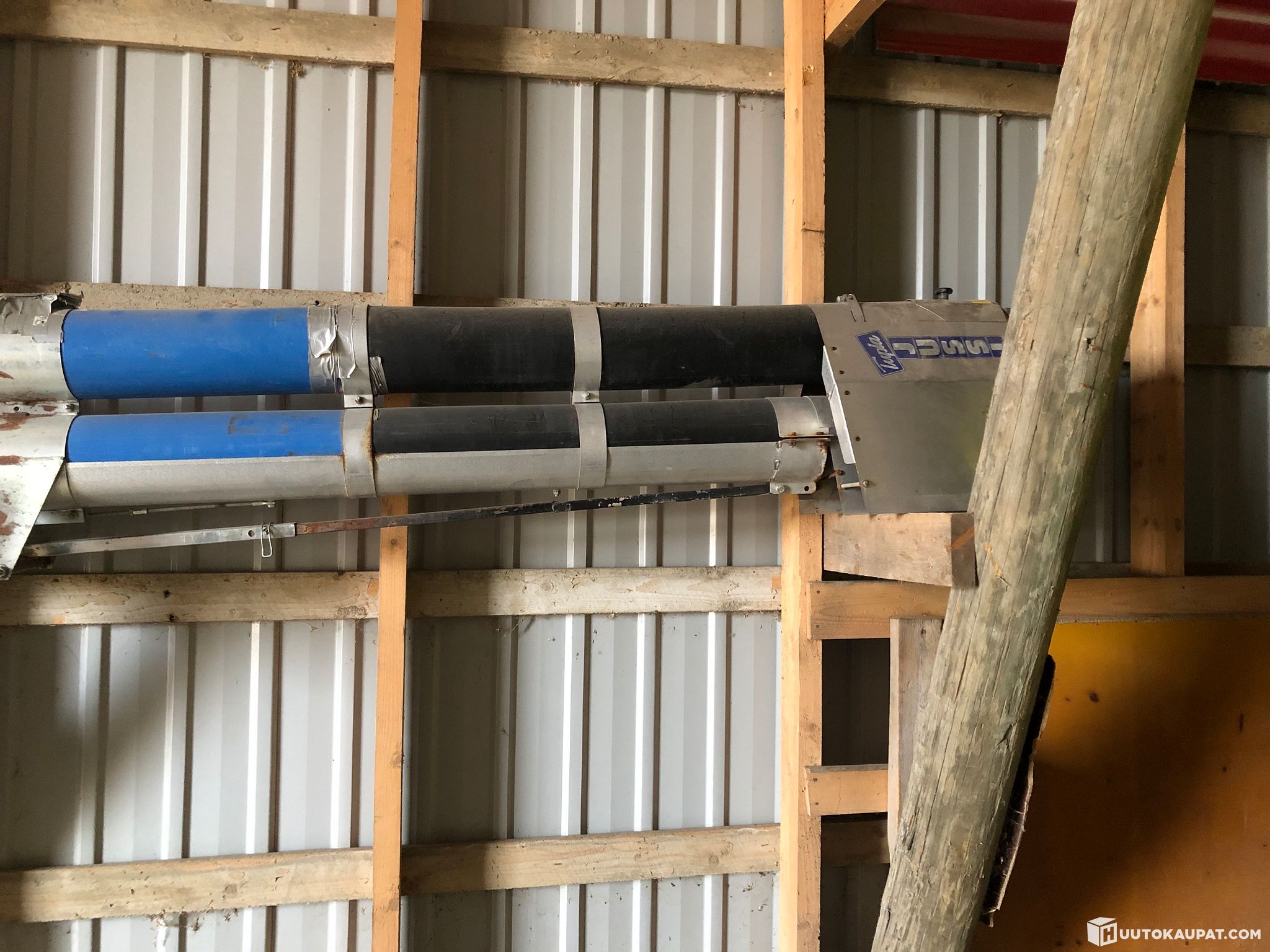 Kunnossa oleva tupla Jussi. 4,4m pitkä eli kerran jatkettu. Mukaan tulee hydraulimoottori. Tehoa kylvökoneen täyttöön tällä.