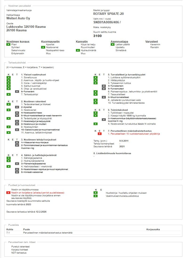 10v tarkastus tekemättä.