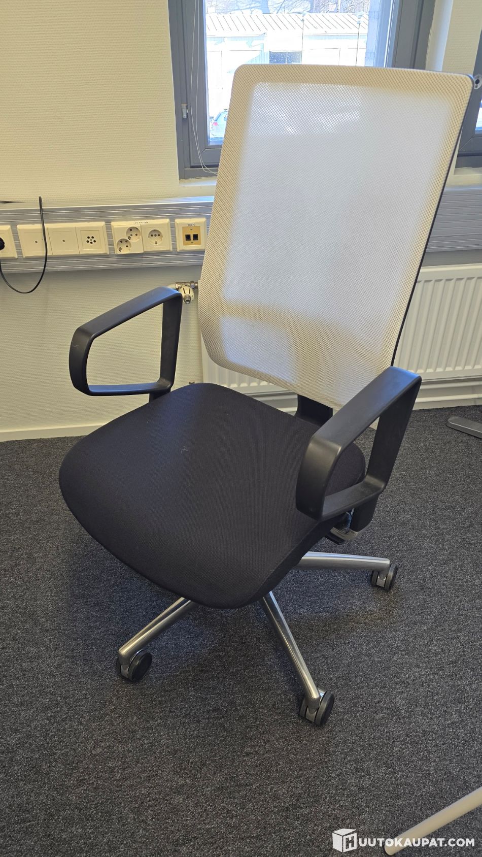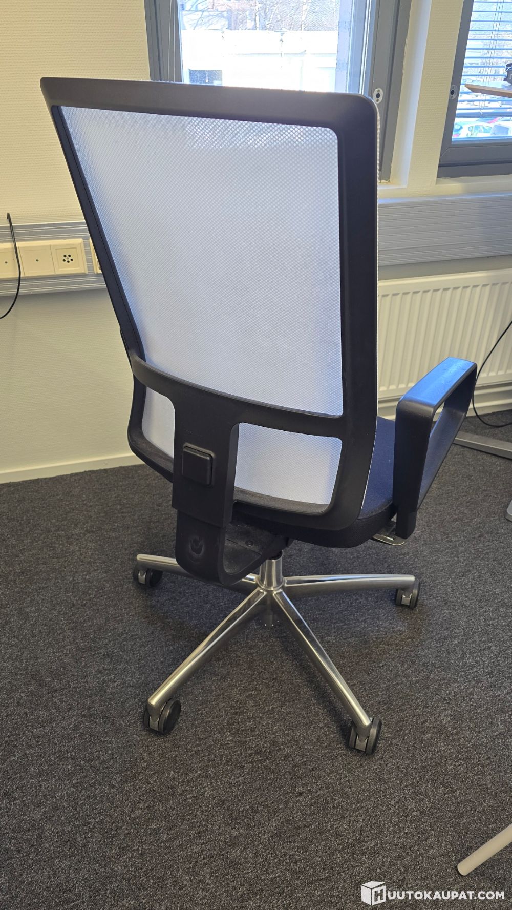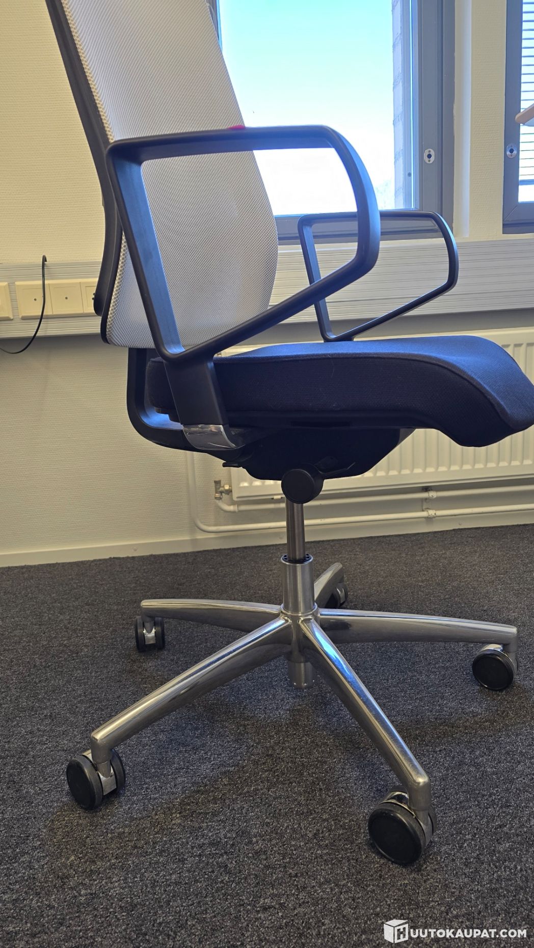 Käytetty, mutta täysin käyttökelpoinen. Tuolissa on jonkin verran käytön jälkeä ja pientä likaa, erityisesti selkänojan verkko-osassa. Ei kuitenkaan vaikuta käyttöön.