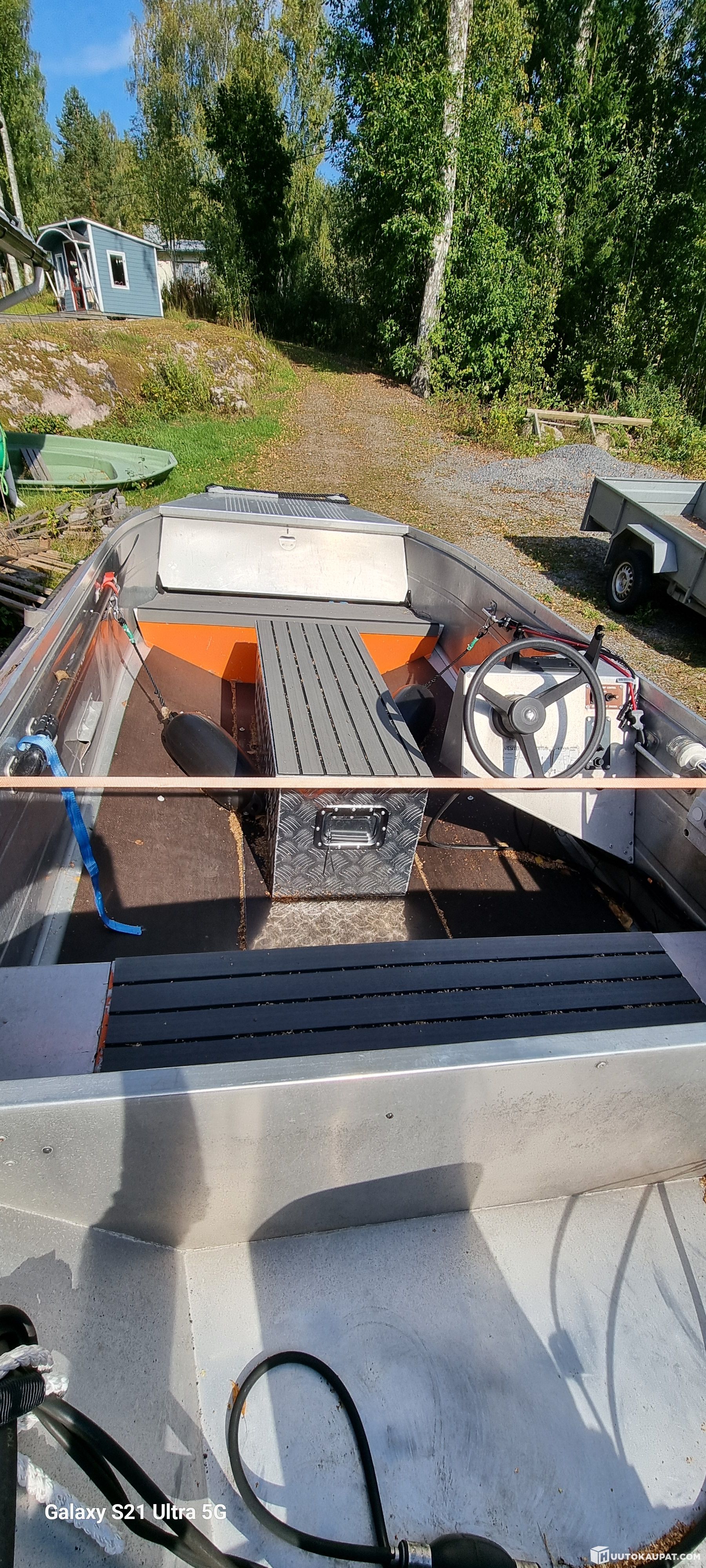 Vene on hyväkuntoinen, ei havaittu vuotoja. Veneen ja moottorikopan maalipinnoissa ja teippauksissa haalistumista.