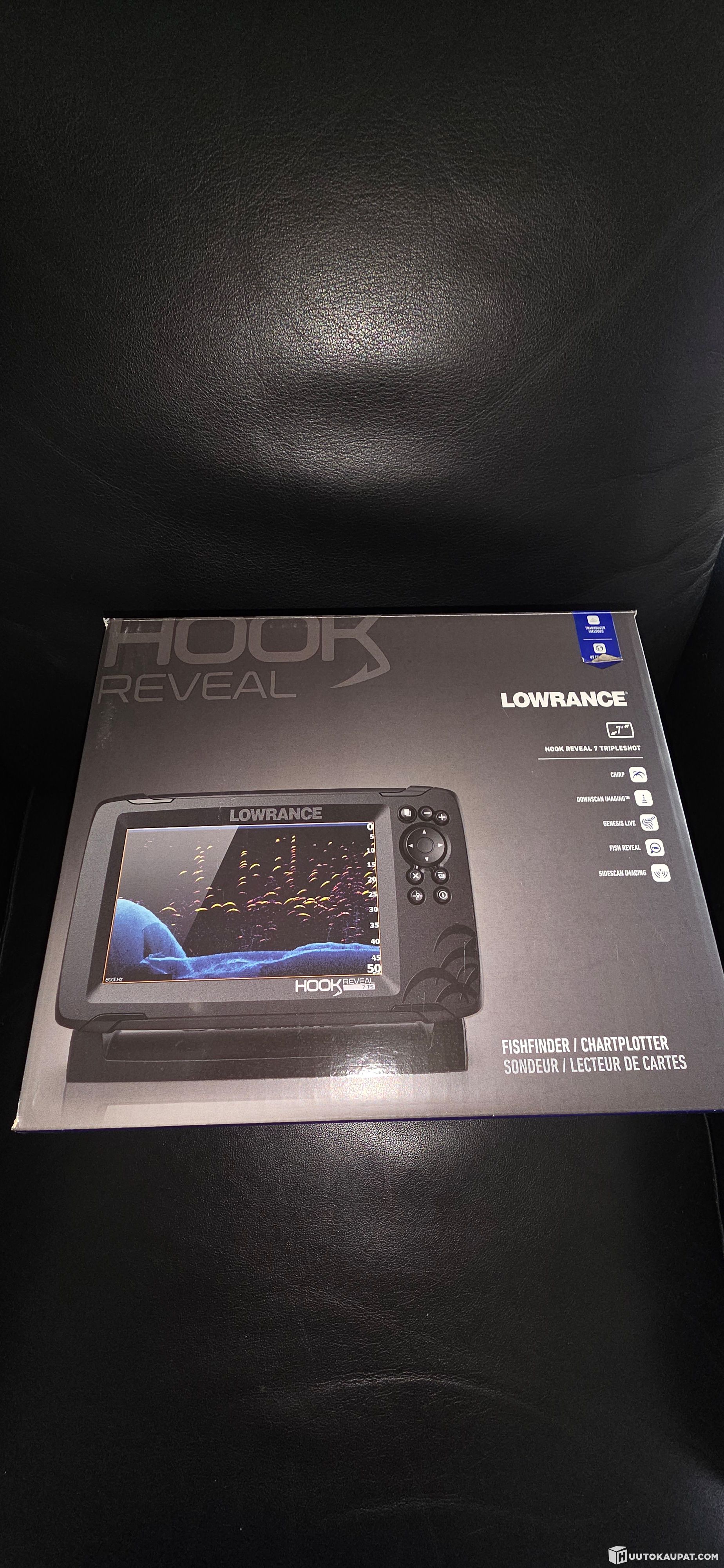 Kaikuluotaimen teline ja kaikuanturi sekä johdot valmiiksi asennettuna.