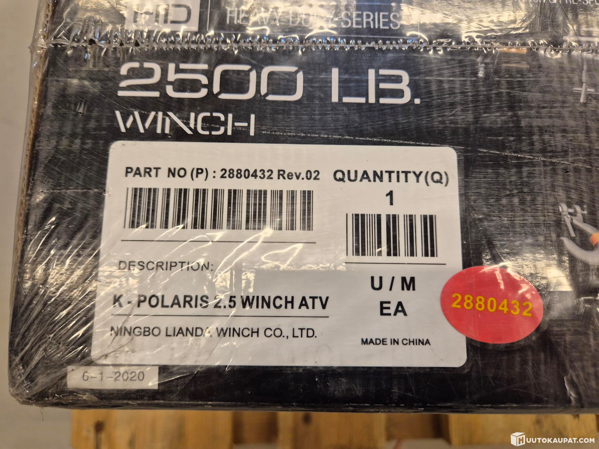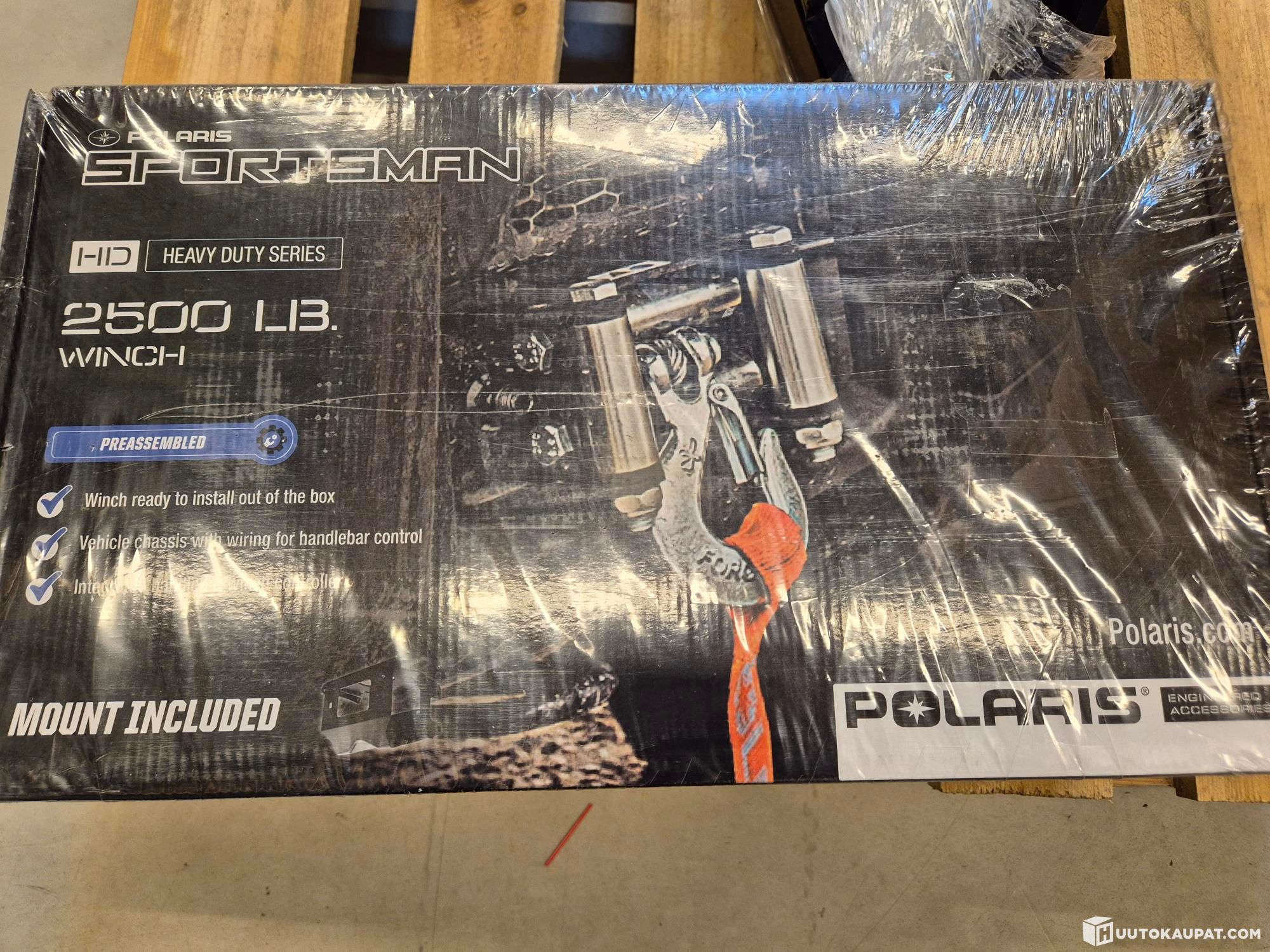 Käyttämätön vinssi avaamattomassa pakkauksessa.