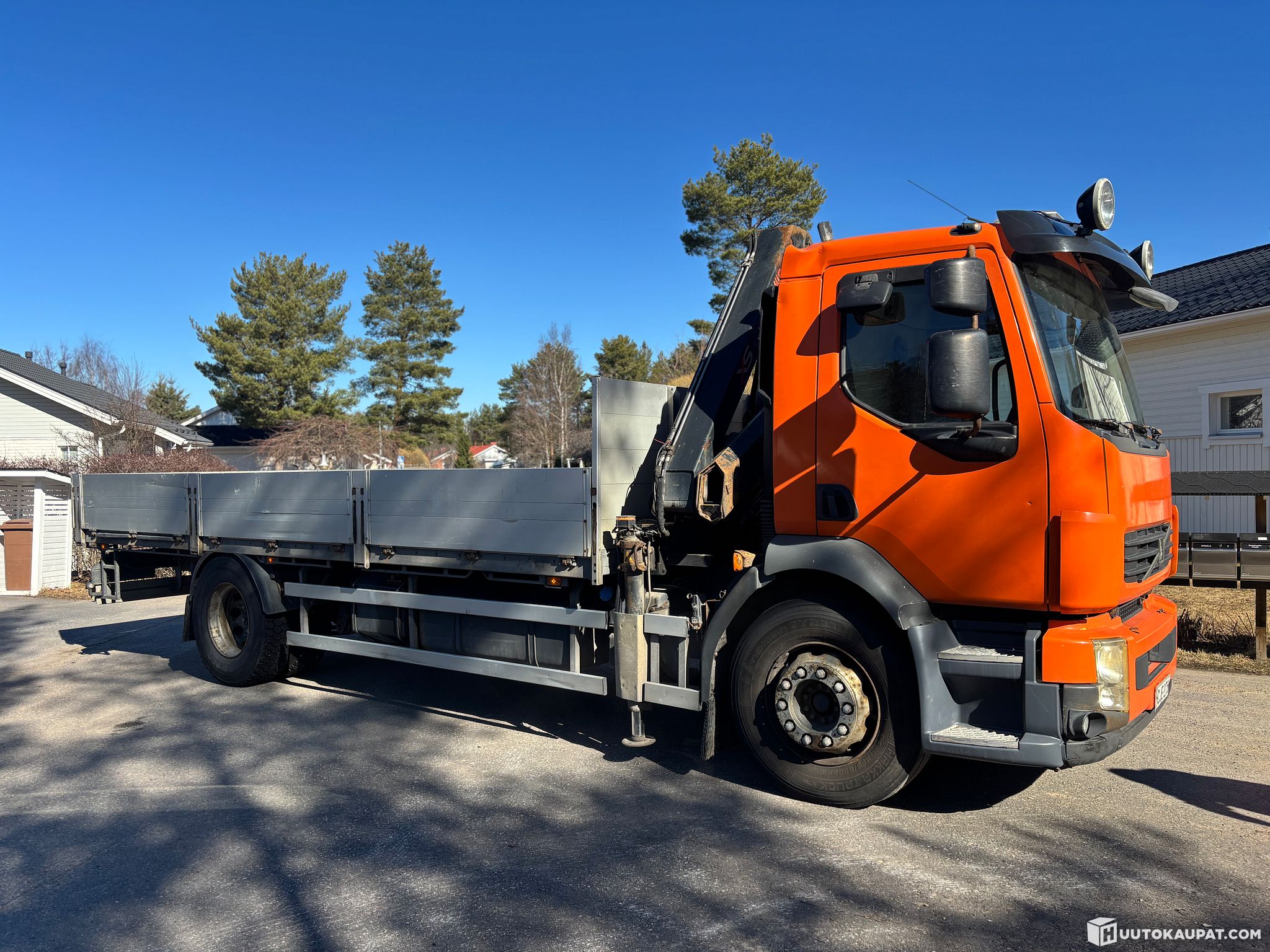 Tästä hyvässä työkunnossa oleva alumiini lavainen Volvo Hiab XSnosturilla.