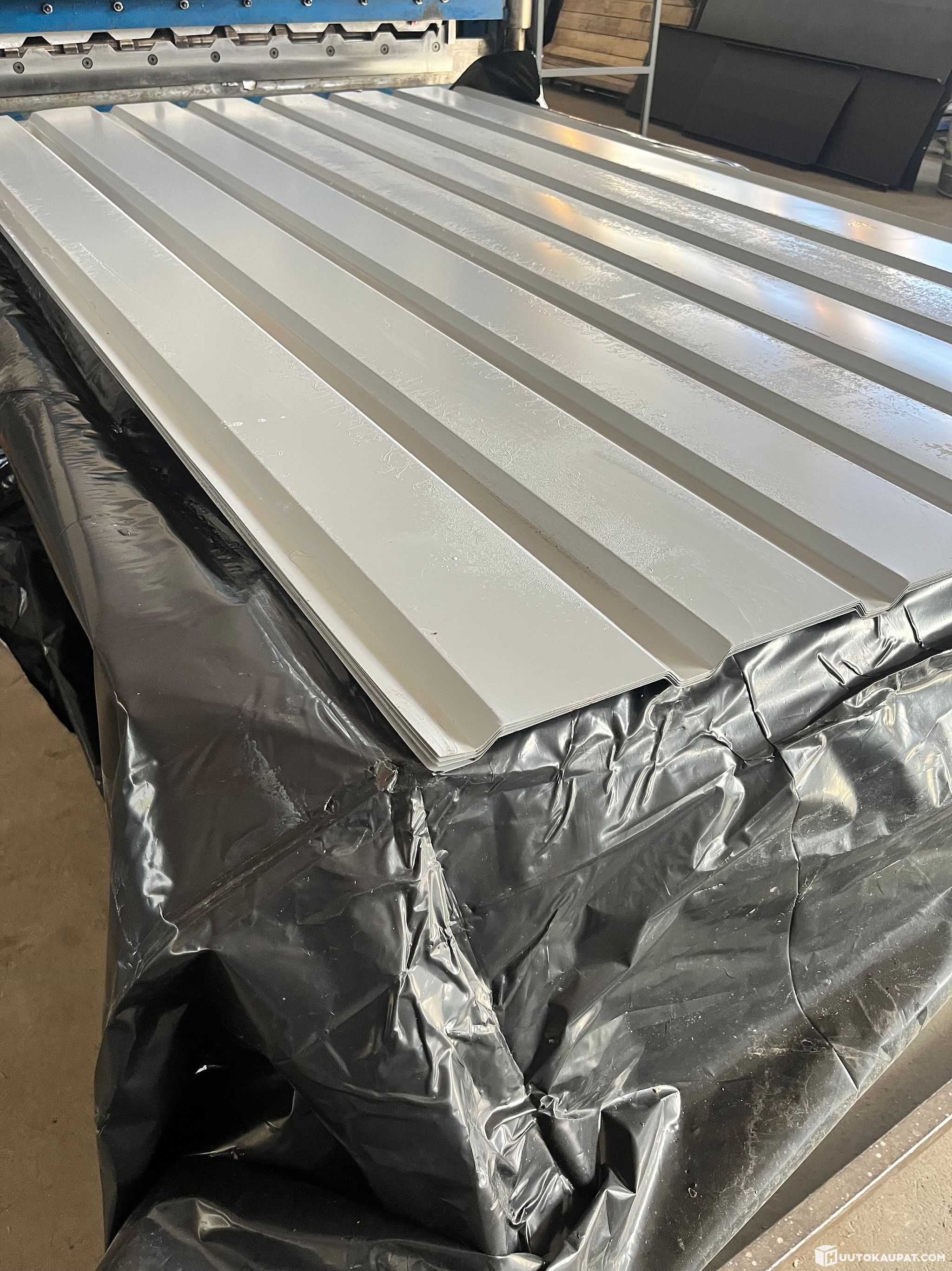Myydään 2-laatuinen nippu vaalean harmaata seinäpeltiä (9 x 2000mm).