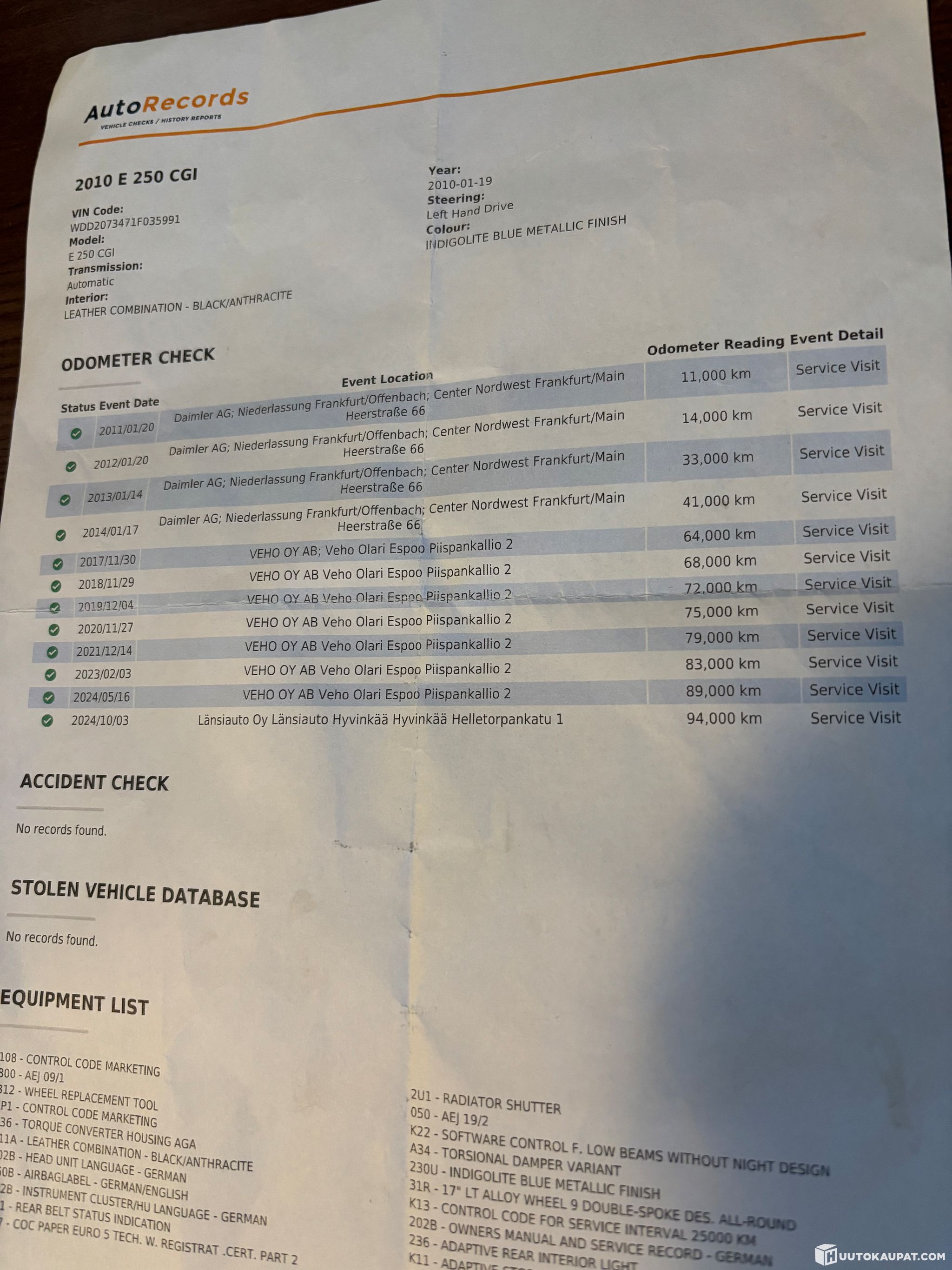 Täydellinen merkkiliikkeen historia(kuva) ja juuri tehty öljynvaihto ja suodatin muualla.