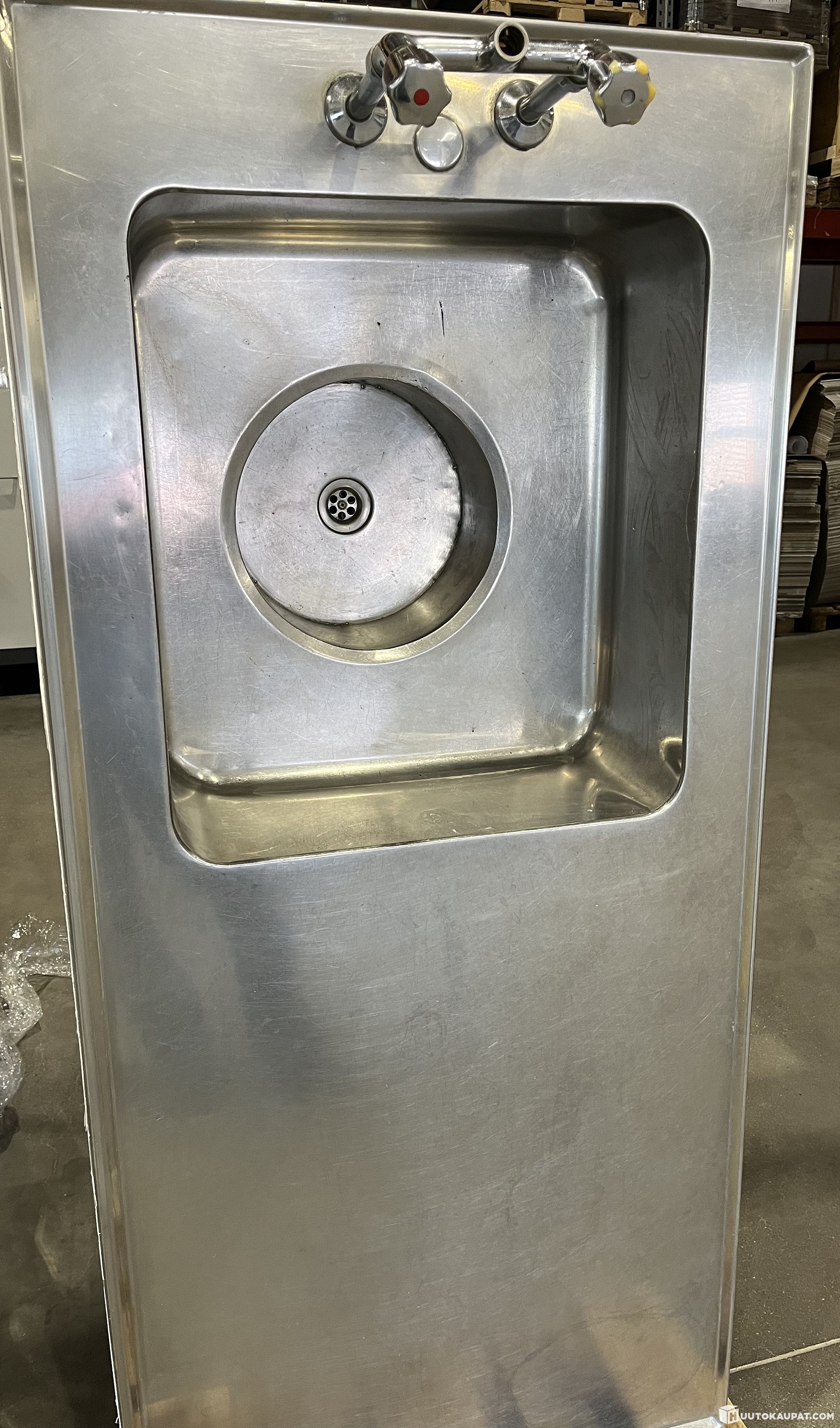 Suurtalouskeittiön pesuallas, 4:llä vetolaatikolla.