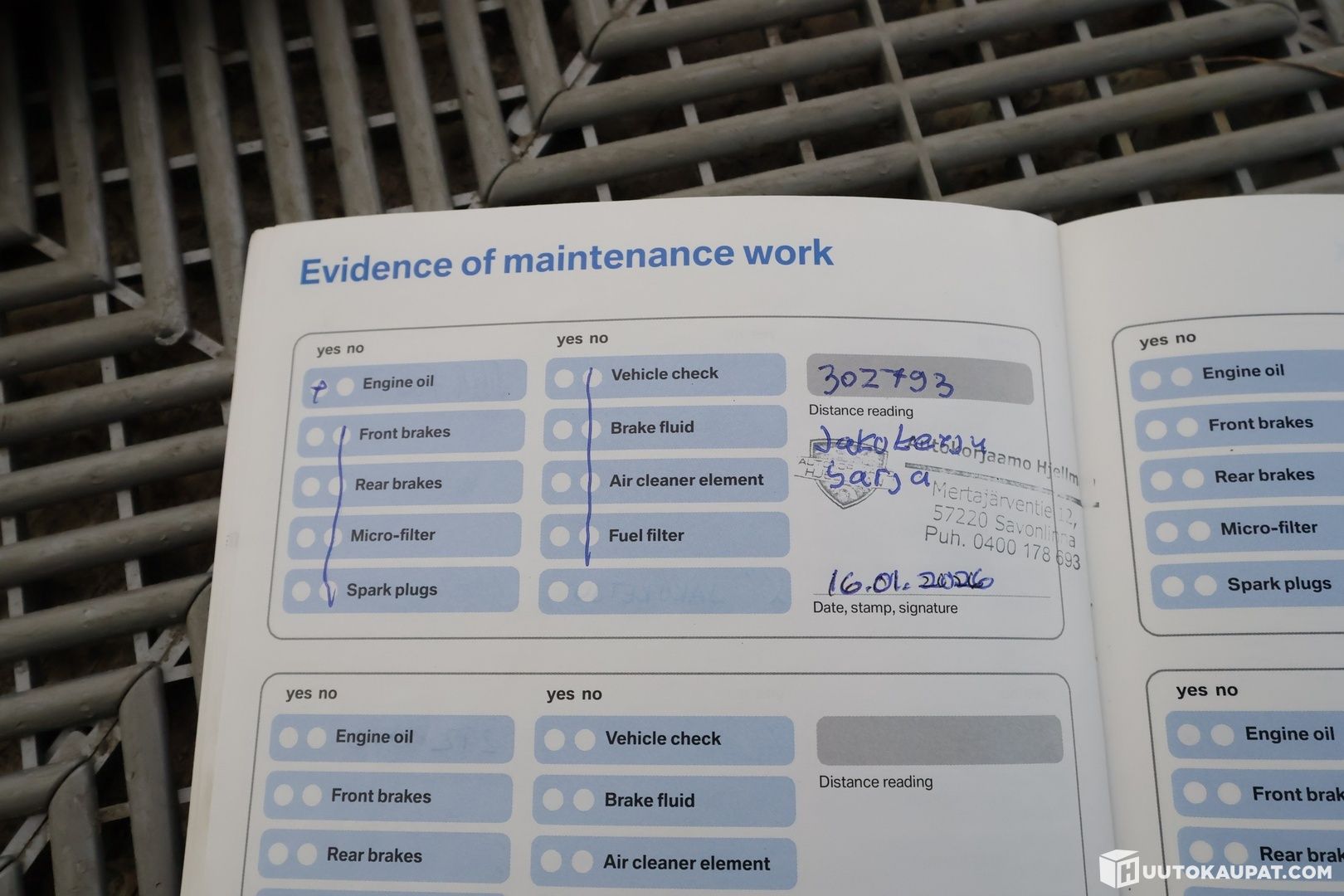 Autoa kattavasti huollettu vuosien varrella viimeisimpänä jakoketju 1/2026.