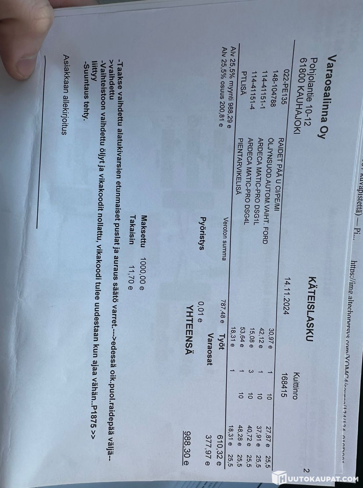 Rinta-Joupin Autoliike Oy ilmoittaa, Huutokaupat.com myy