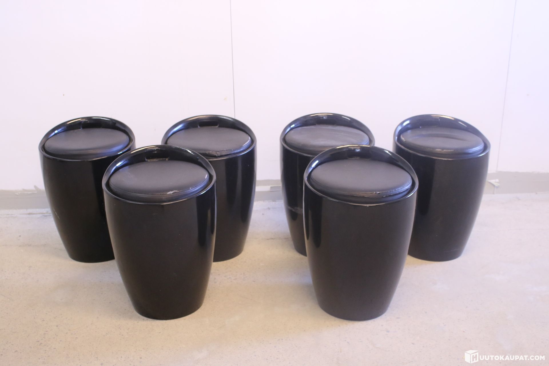 Myydään kuusi kappaletta säilytystilallisia jakkaroita.