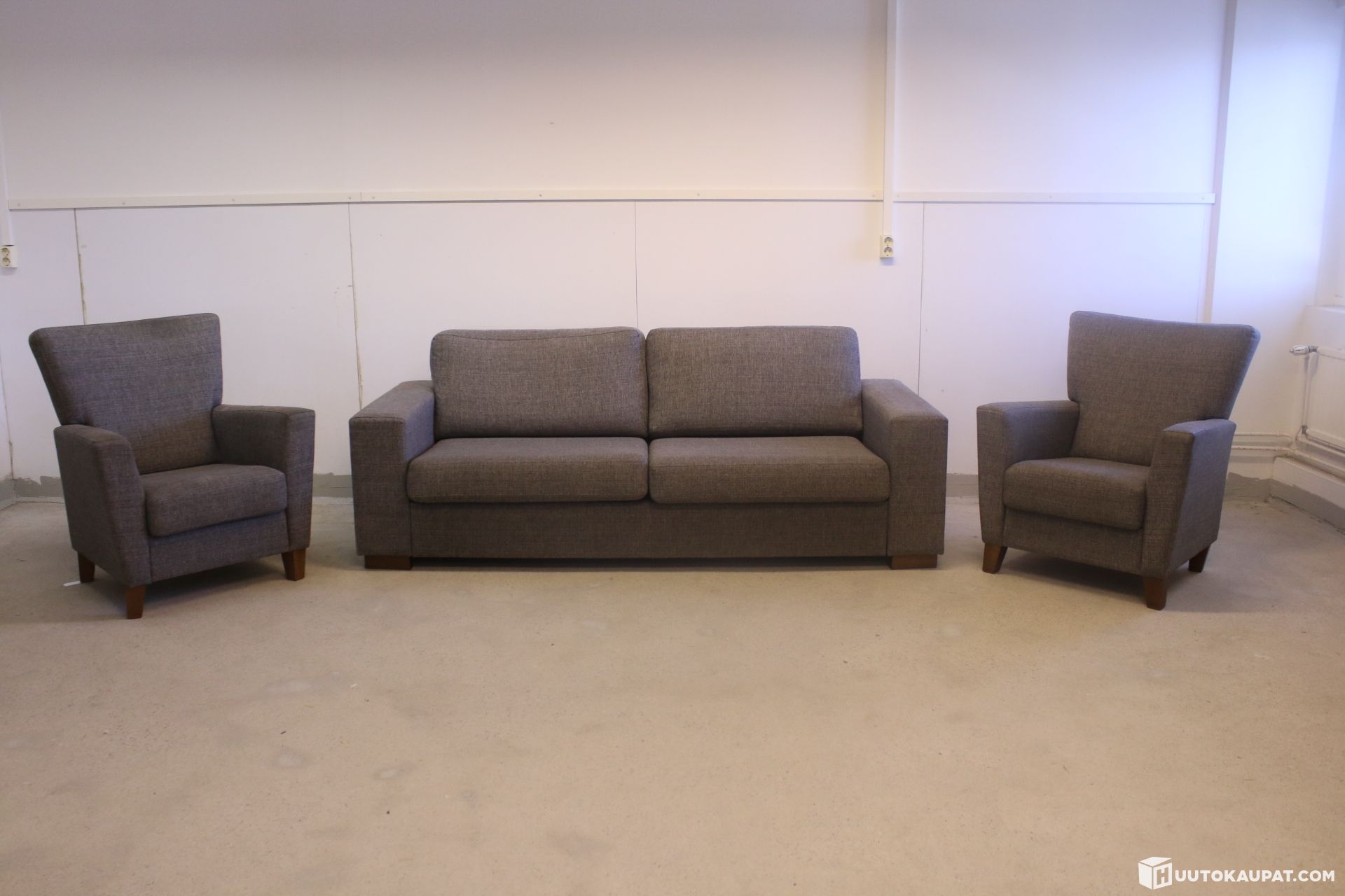 Näissä kolmessa (sohva ja nojatuolit) harmaa väri.
