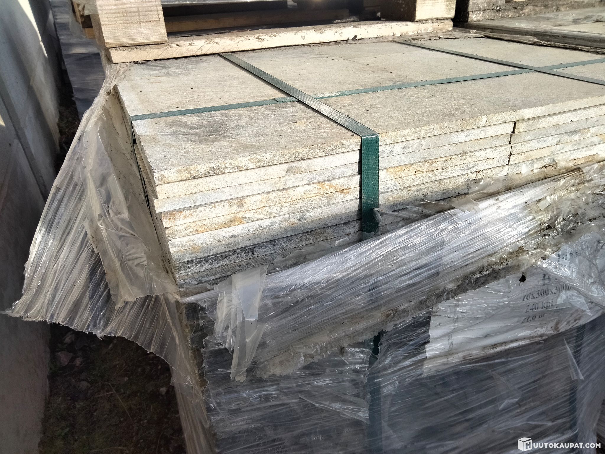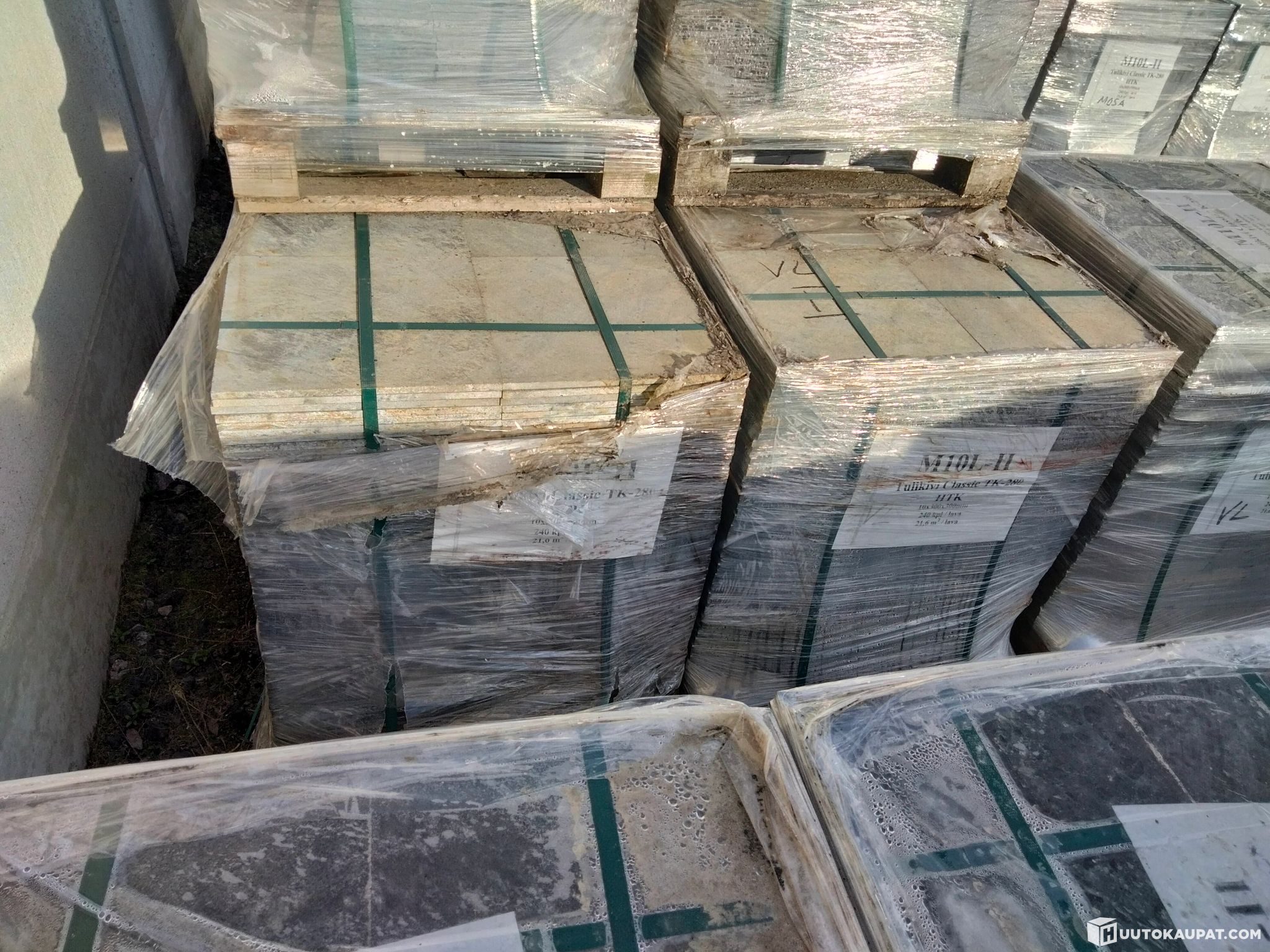 Laatoissa on luonnonkivelle tyypillisiä tekstuuri ja värivaihteluja.