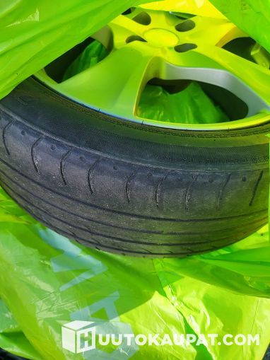 Kahdet renkaat alumiinivanteilla..