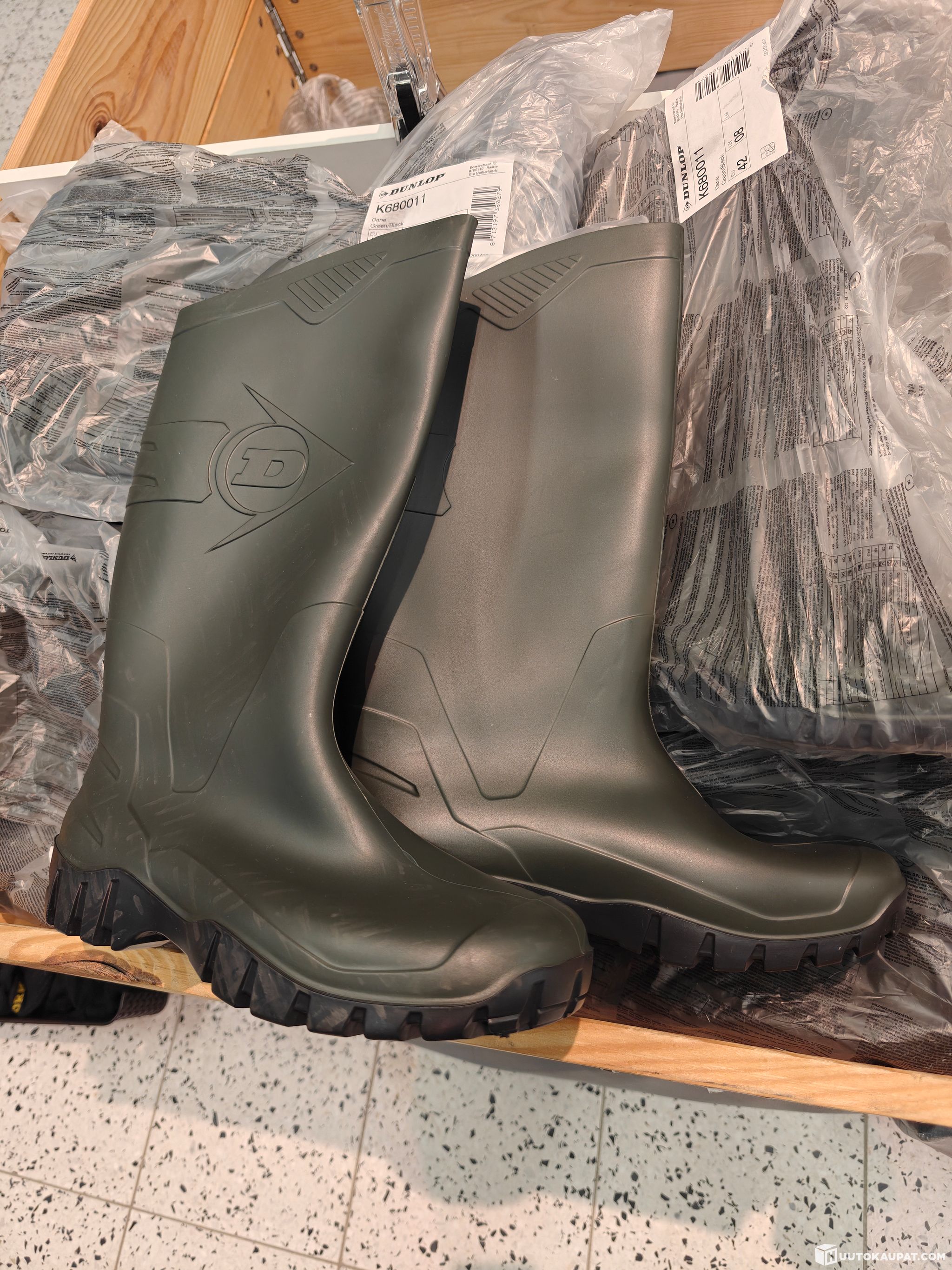 20 parin erä Dunlop -merkkisiä kumisaappaita koossa 42.