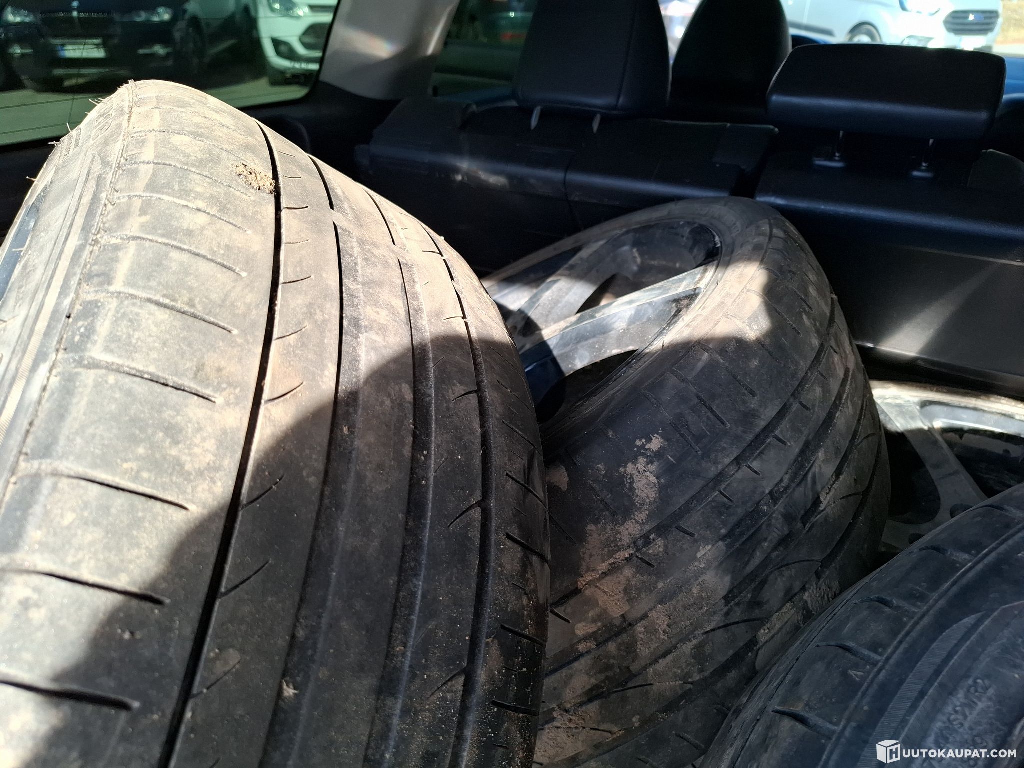 Mukaan kahdet renkaat alumiinivanteilla, joskin kesärenkaat alkavat olemaan vaihtokunnossa.