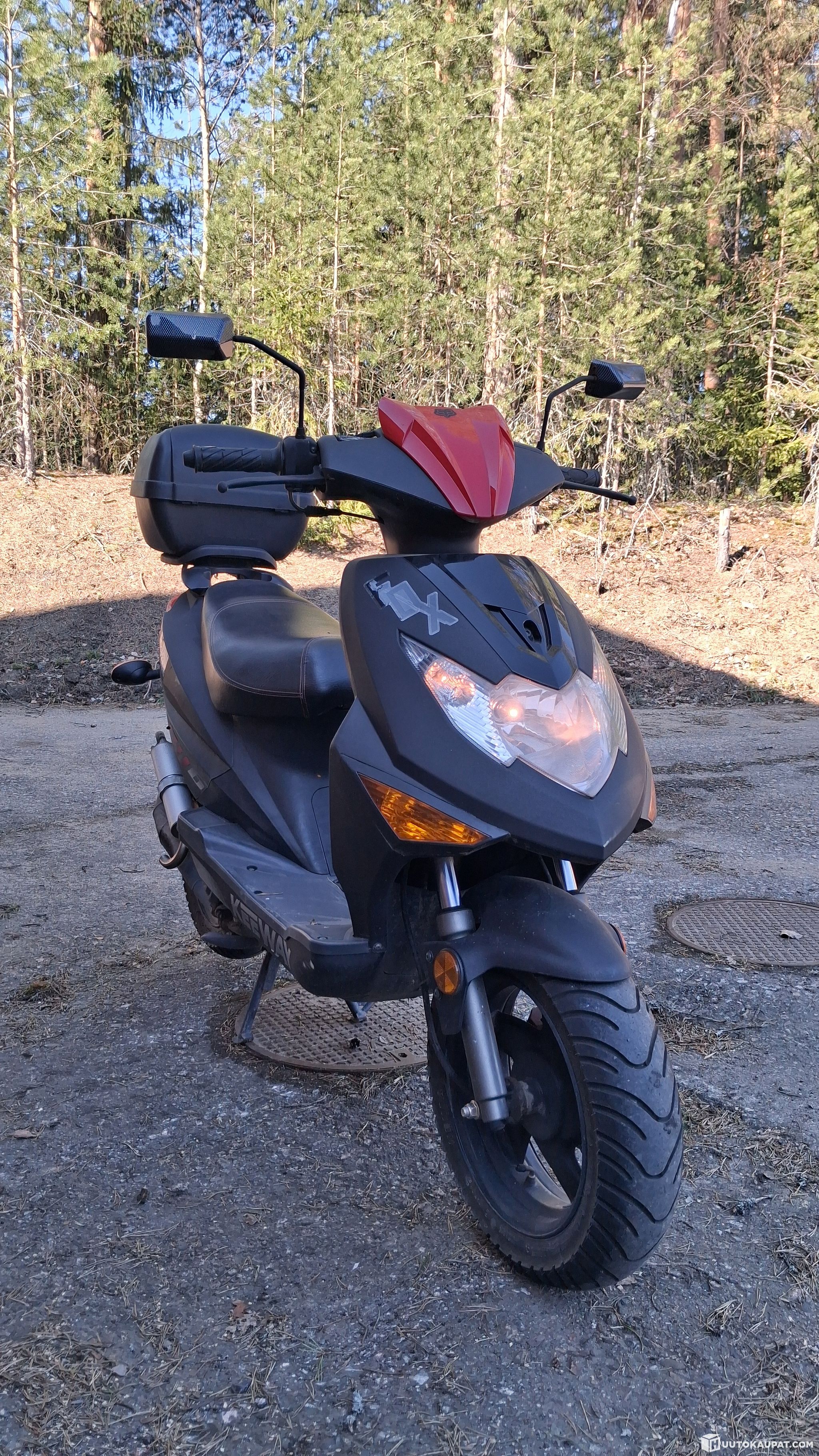 Kuvien mukainen ja vähällä käytöllä ollut kaksitahtinen Keeway. Meille tullut kesäkuussa 2015 ensimmäiseltä omistajalta, mittarilukema 3030 km pitää paikkansa. Kevät huoltoa ei ole tehty, akku ladattu ja ajettu vajaa kilometri, jonka aikana kaikki toimi hyvin. Vuosittain kuitenkin ajettu, joten oletettavasti toimii jatkossakin - mutta koska jo vanhempi skootteri niin myydään korjattavaksi.