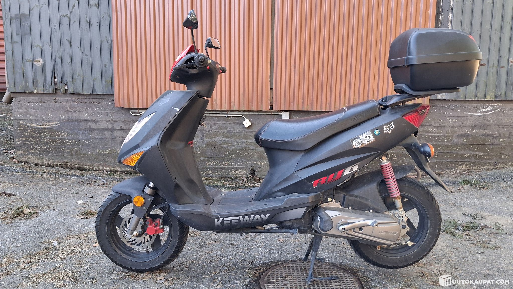 Skootterin lisäksi kauppaan kuuluu tavarasäilytys boxi ja käyttämätön M -koon kypärä, joten liikennekäyttöön oton jälkeen voi jo lähteä iloisesti päristelemään.