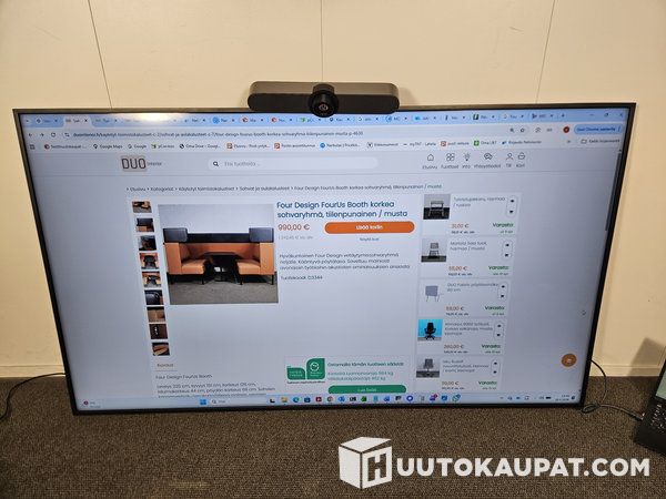 Myydään toimiva ja siistikuntoinen Samsungin 75” ammattinäyttö (digital signage) + Logitech videoneuvottelukamera.