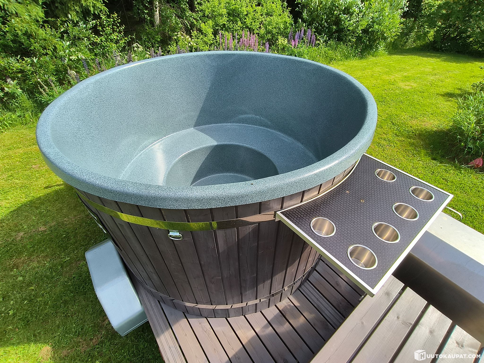 Tehokas 30kW kamiina ja pw-spa talouslaatuinen 6-8hlö palju. Äärivaloja laitettu että erottuu joukosta.