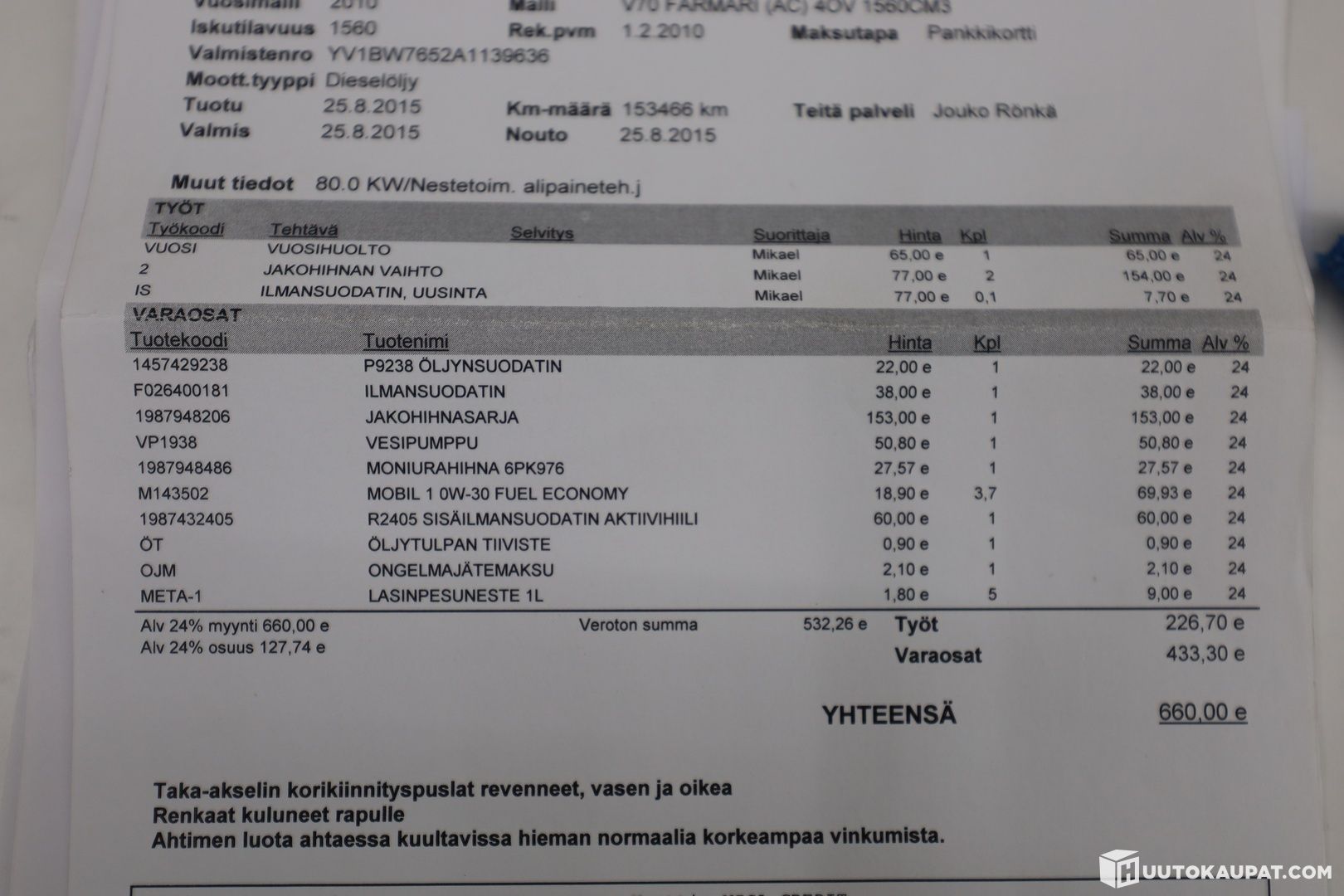 Rinta-Joupin Autoliike Oy ilmoittaa, Huutokaupat.com myy