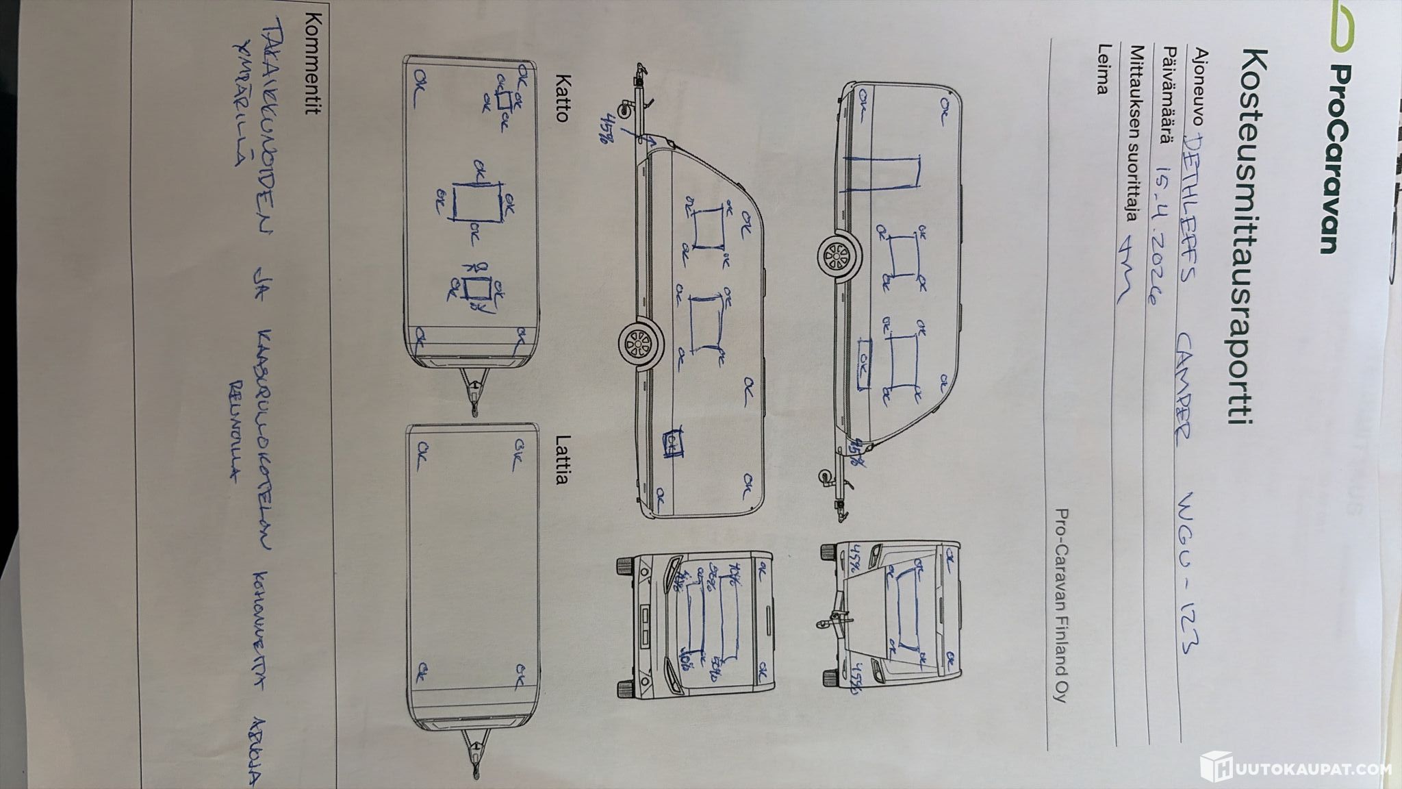 Kosteusmittaukset: Ensimmäinen kosteusmittaus tehty 8/2025 — mitattu kuivaksi. Uusintamittaus tehty 15.04.2026 — takaikkunoiden ja kaasukotelon ympärillä havaittu kohonneita kosteusarvoja. 📸 Katso kosteusmittauskuvat ilmoituksen kuvista!