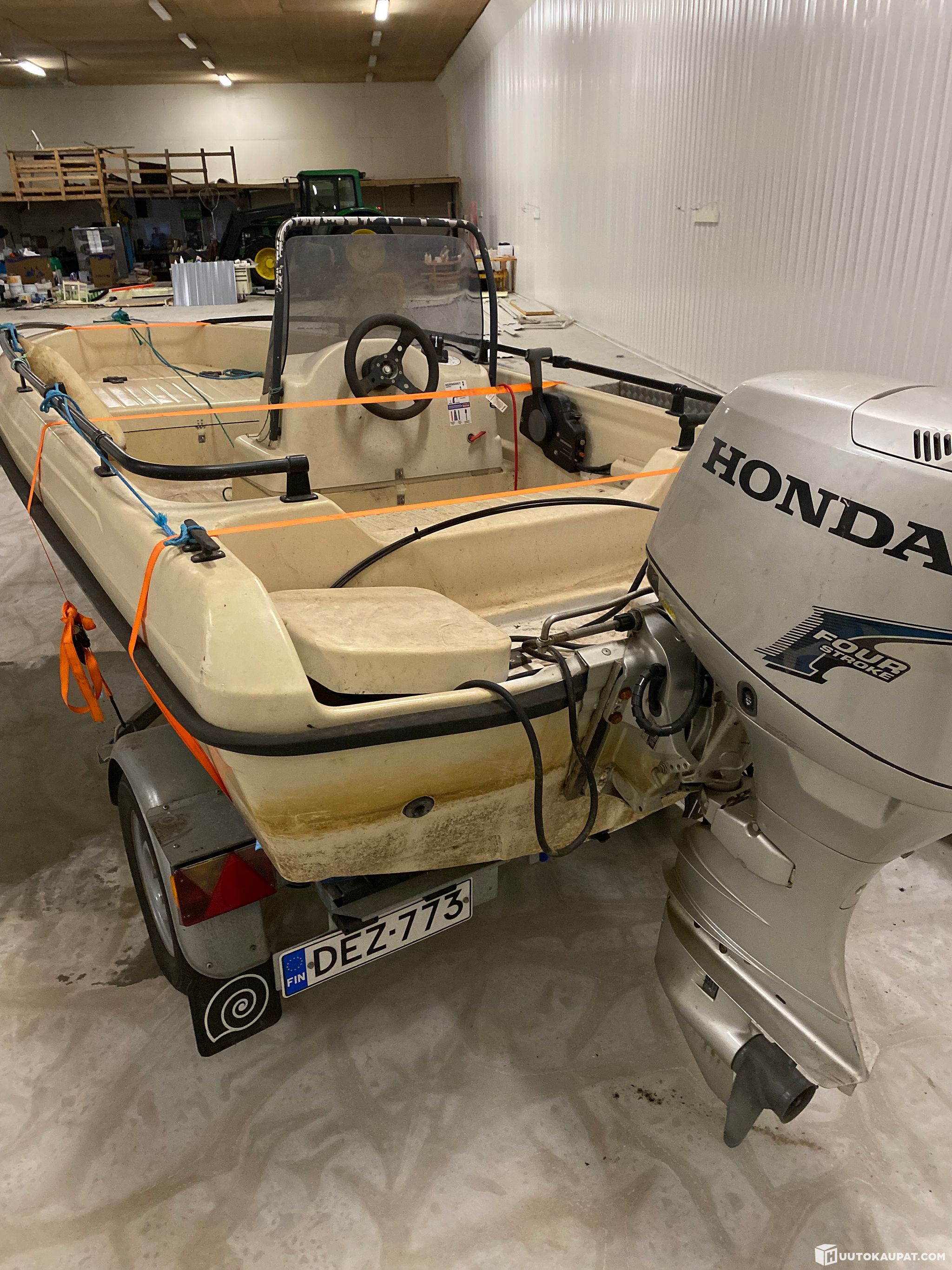 Terhi vähän ajetulla hondan 40hv moottorilla,vaikka kopassa 20hv tarrat.ja pari kertaa käytetyllä trailerilla,valmis paketti. Halutessaan pääsee kokeilemaan.