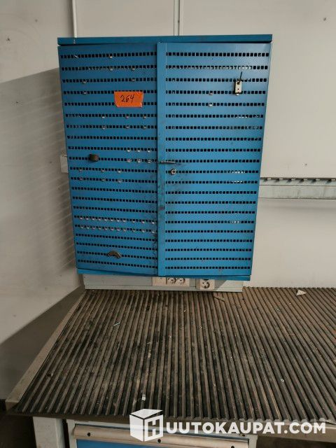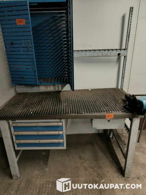 Myydään korjaamon poismuuton vuoksi GWS työpöytä, s 75 x l 150 x k 85, laatikosto ja ruuvipuristin. Sähkökotelo. Peltikaappi. Ensimmäisessä ilmoituksessa oli kaksi peltikaappia, joista molemmista puuttui toinen ovi. Nyt on tarjolla yksi peltikaappi, jossa molemmat ovet