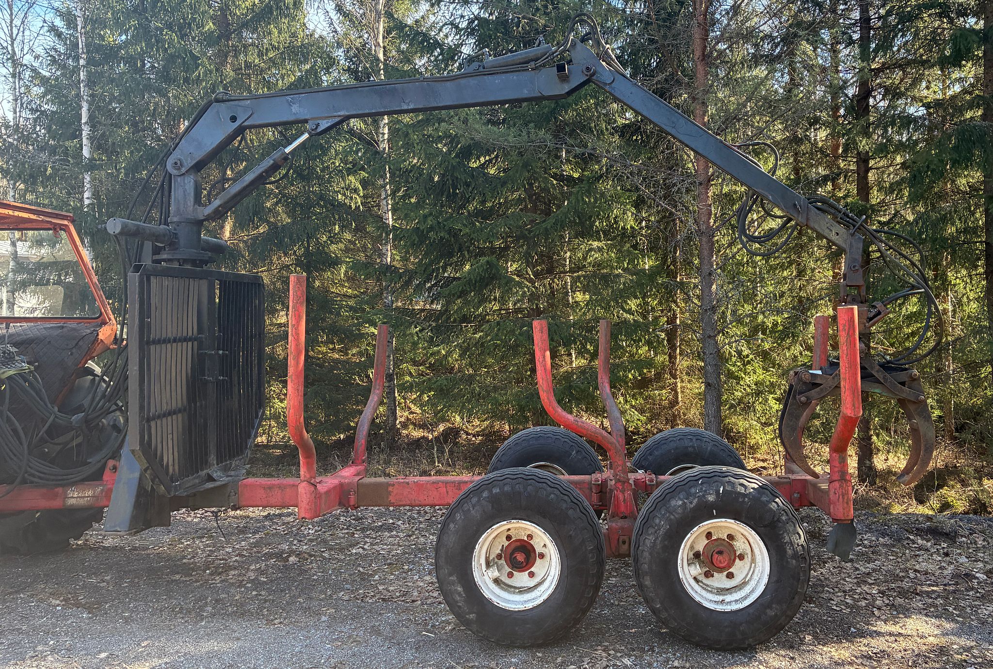 eteen ja taakse kopantelat ja taakse vielä harvennustelat on vaaka risukoura puntari peiton levityslaite.ja vielä giljotiinikoura.