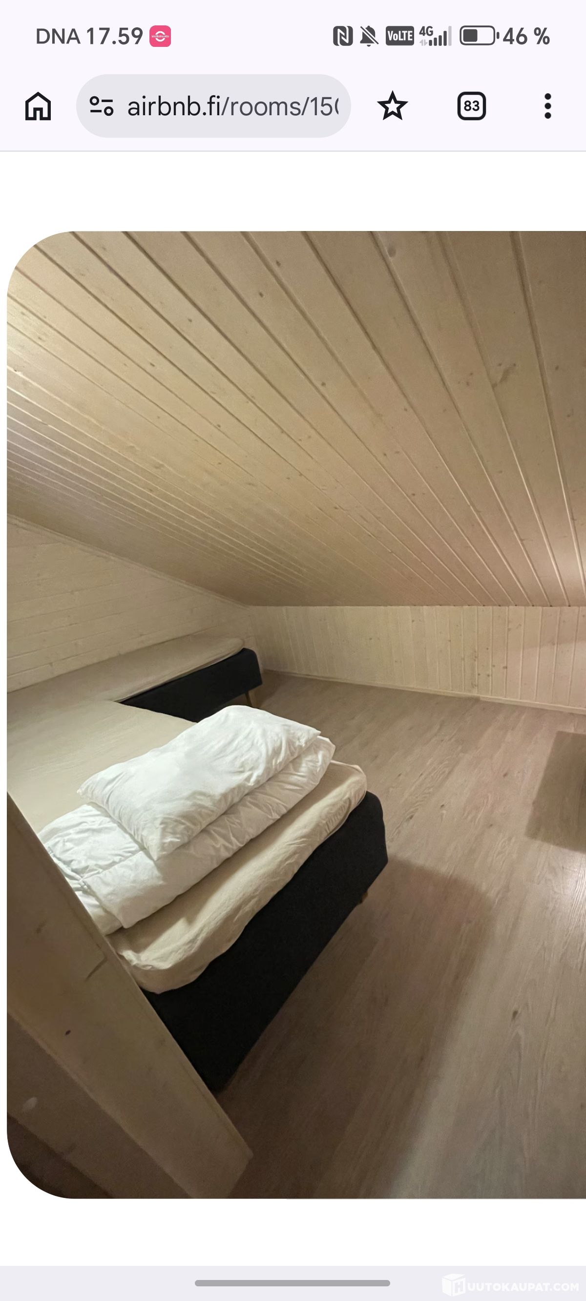 Hox. Kuvissa näkyvä leveä patja lattialla on lyöty siis kierrätykseen, ja tilalle tuli leveä parisänky.