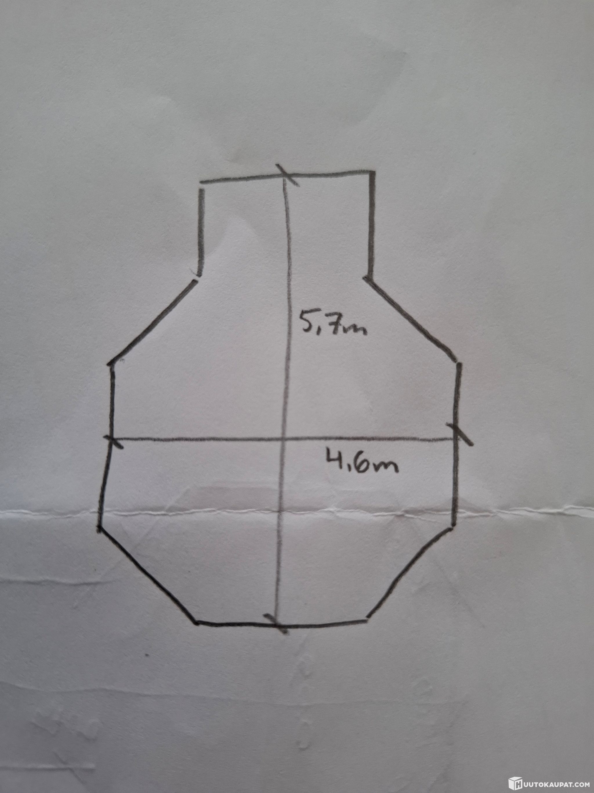 Viimeisessä kuvassa näkyy pituus ja leveys, piirrutus ei ole mittakaavassa.