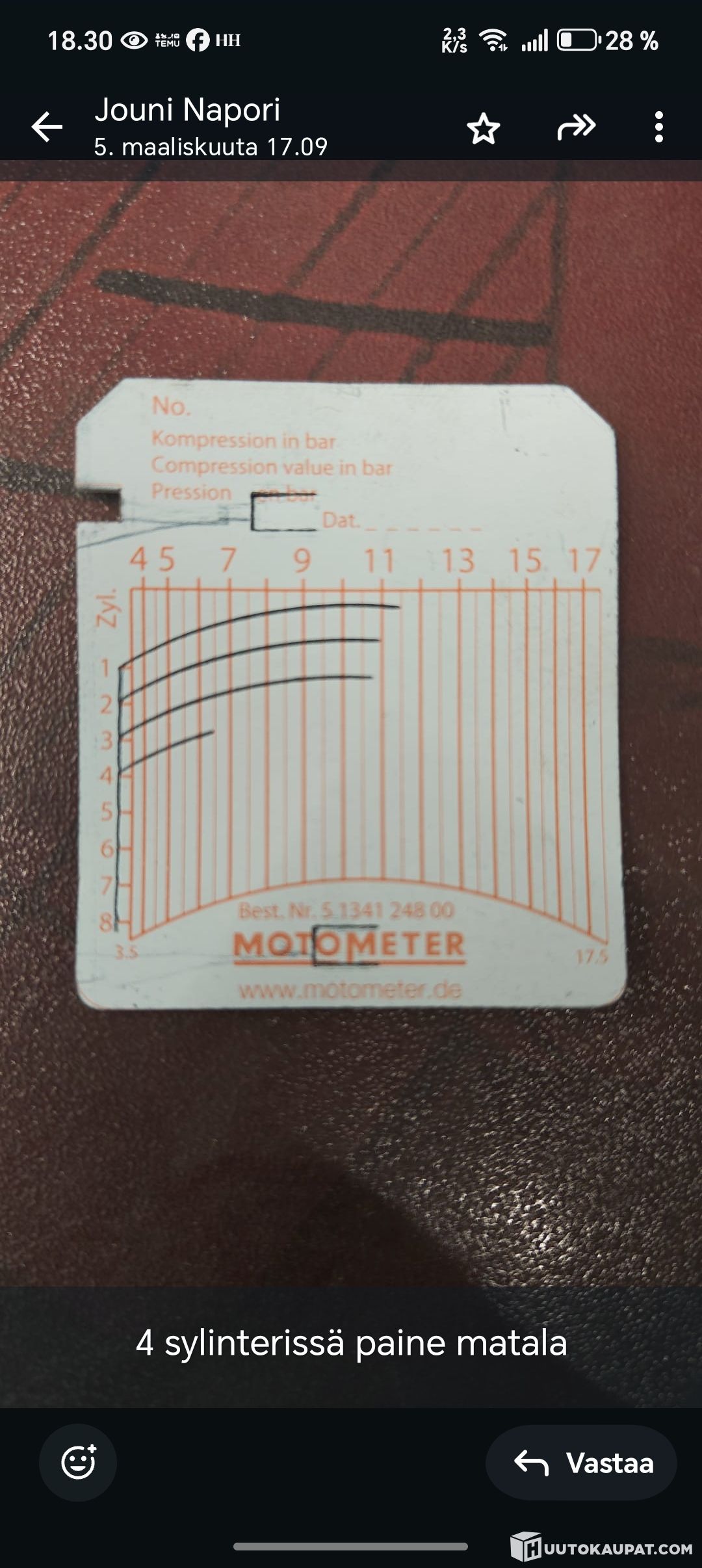 Moottorissa häikkää. 4.sylinterissä paineet laskeneet, kuuluu ääntä ja, käynti epätasainen. Savuttaa kylmänä.